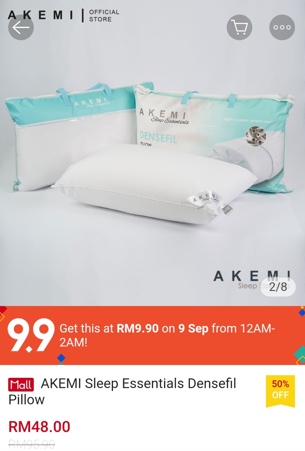 ▪ AKEMI Sleep Essentials Densefil Pillow – RM59.90 RM9.90