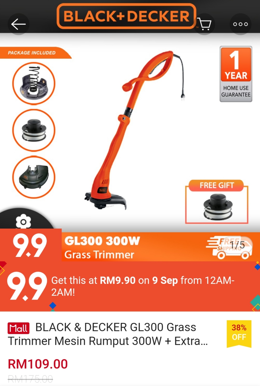 ▪ BLACK & DECKER GL300 Grass Trimmer + Extra Spool Line – RM175 RM9.90