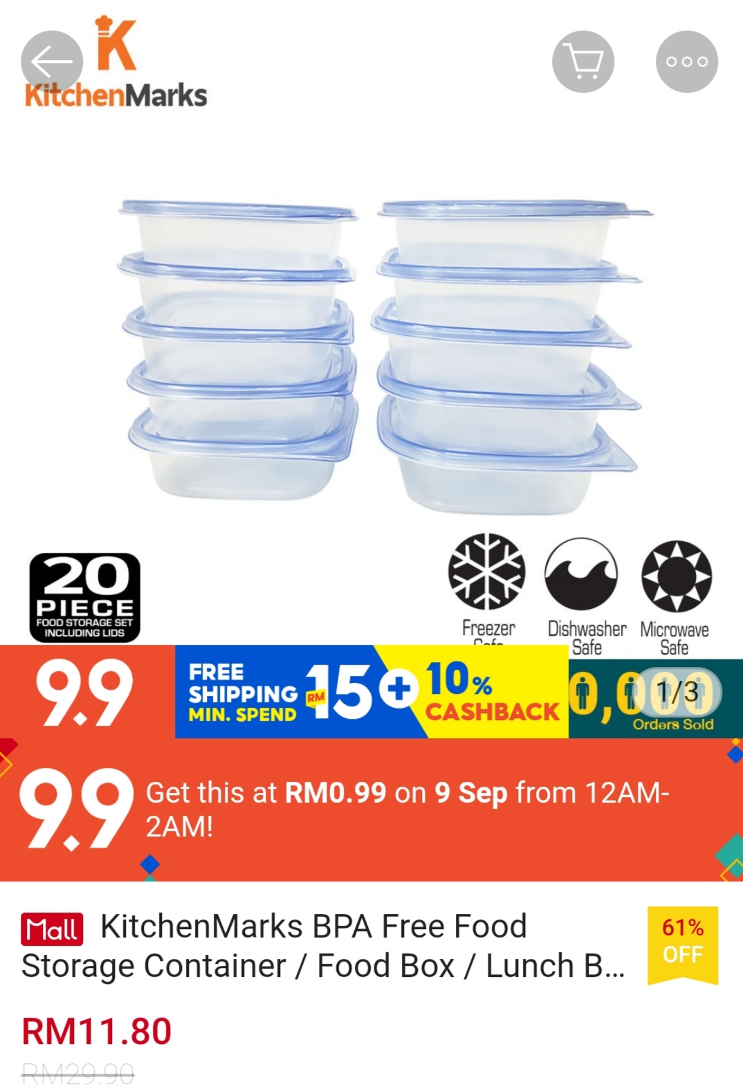 ▪ KitchenMarks BPA Free Food Storage Container / Food Box / Lunch Box with Lid/ Tupperware (20 Pcs/10 Container) – RM29.90 RM0.99