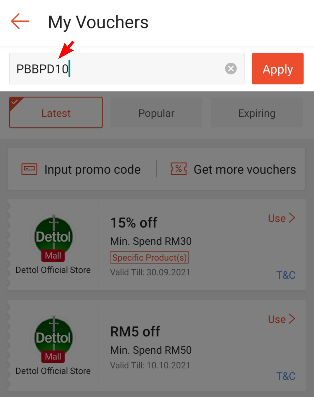 步骤1:打开Shopee App,点击“Me”后,点击“My Vouchers”。(或者直接点击链接【点击这里】)