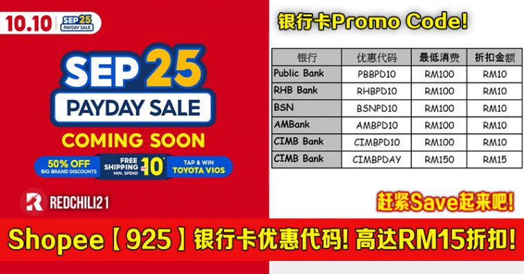 ▼ 让你一次看完!Shopee 9月25日推出银行卡Promo Code 完整列表!