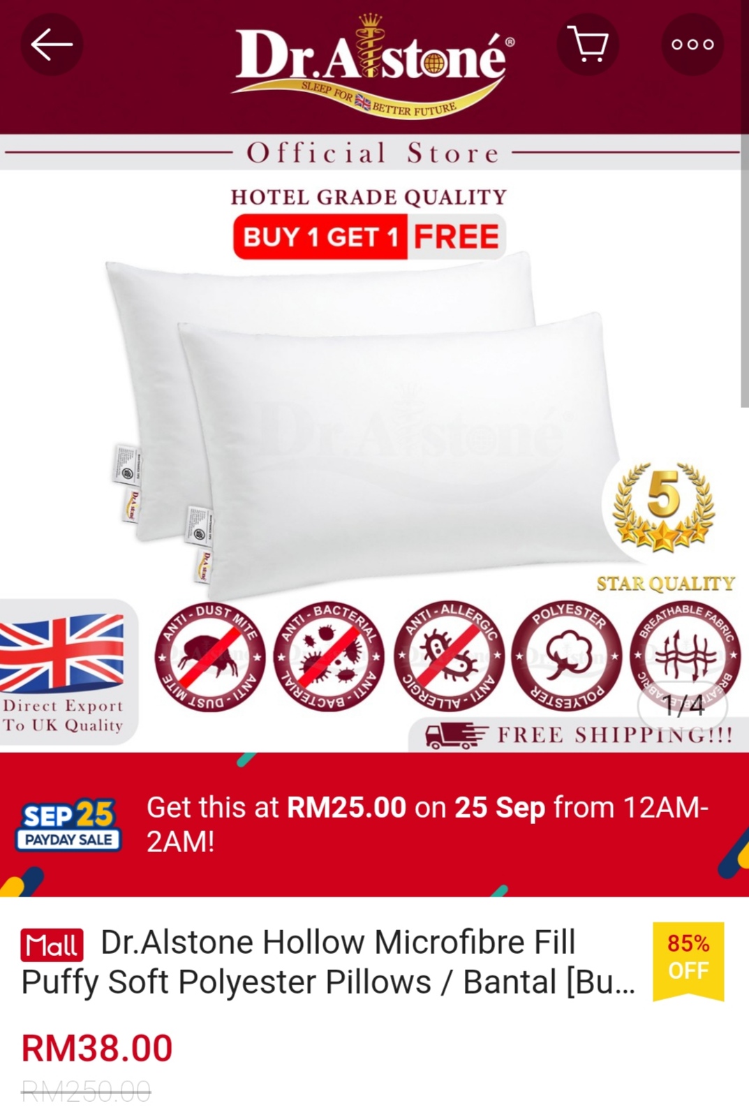 ▪ Dr.Alstone Hollow Microfibre Fill Puffy Soft Polyester Pillows – RM38 RM25
