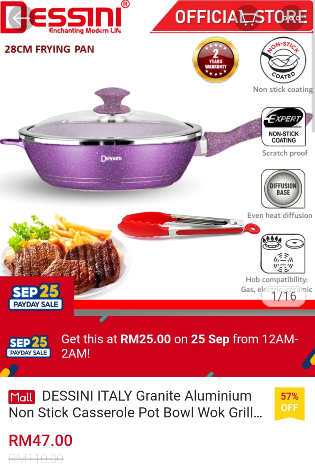 ▪ DESSINI ITALY Granite Aluminium Non Stick Casserole Pot Bowl Wok Grill Fry Pan Cookware Kuali Periuk (28cm) – RM47 RM25
