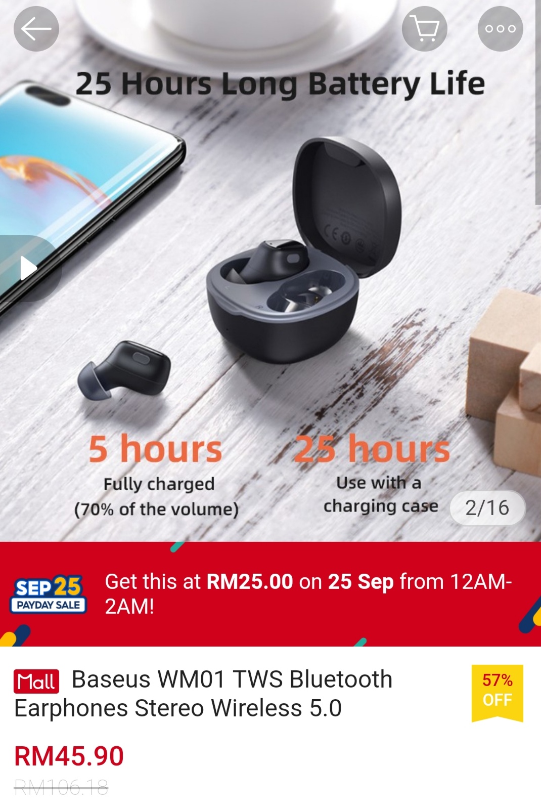 ▪ Baseus WM01 TWS Bluetooth Earphones Stereo Wireless 5.0 – RM45.90 RM25