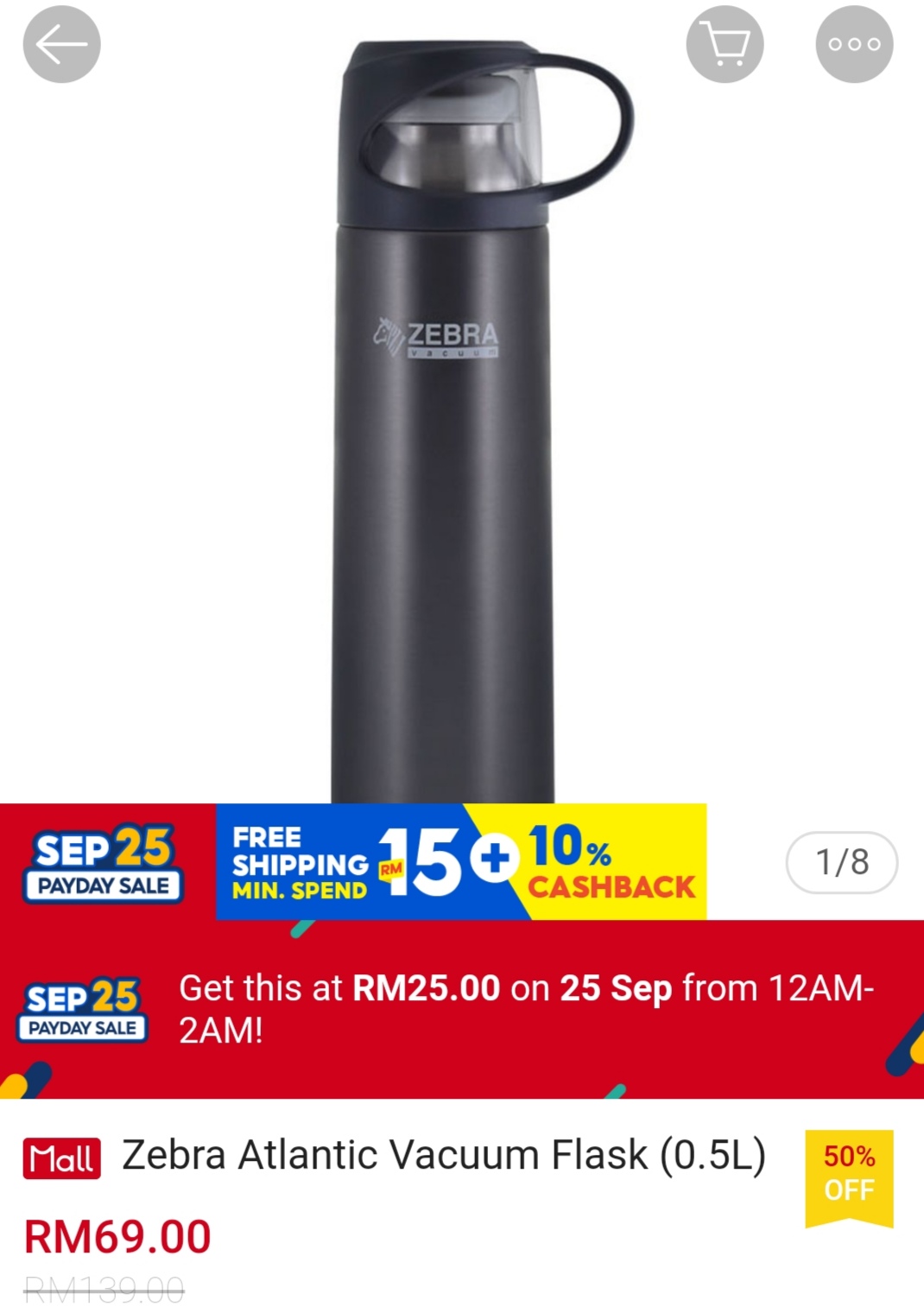 ▪ Zebra Atlantic Vacuum Flask (0.5L) – RM69 RM25