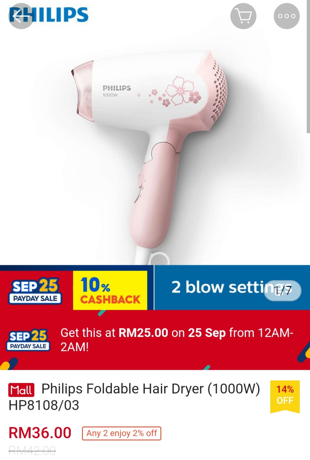 ▪ Philips Foldable Hair Dryer (1000W) – RM36 RM25