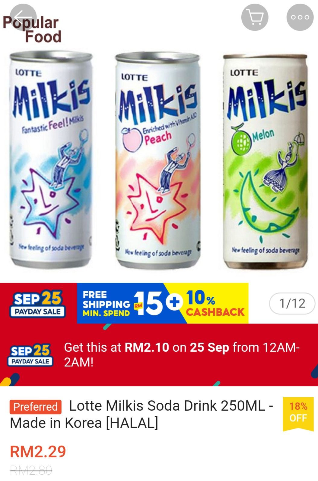 ▼ Lotte Milkis Soda Drink 250ml – RM2.10(原价RM2.80)