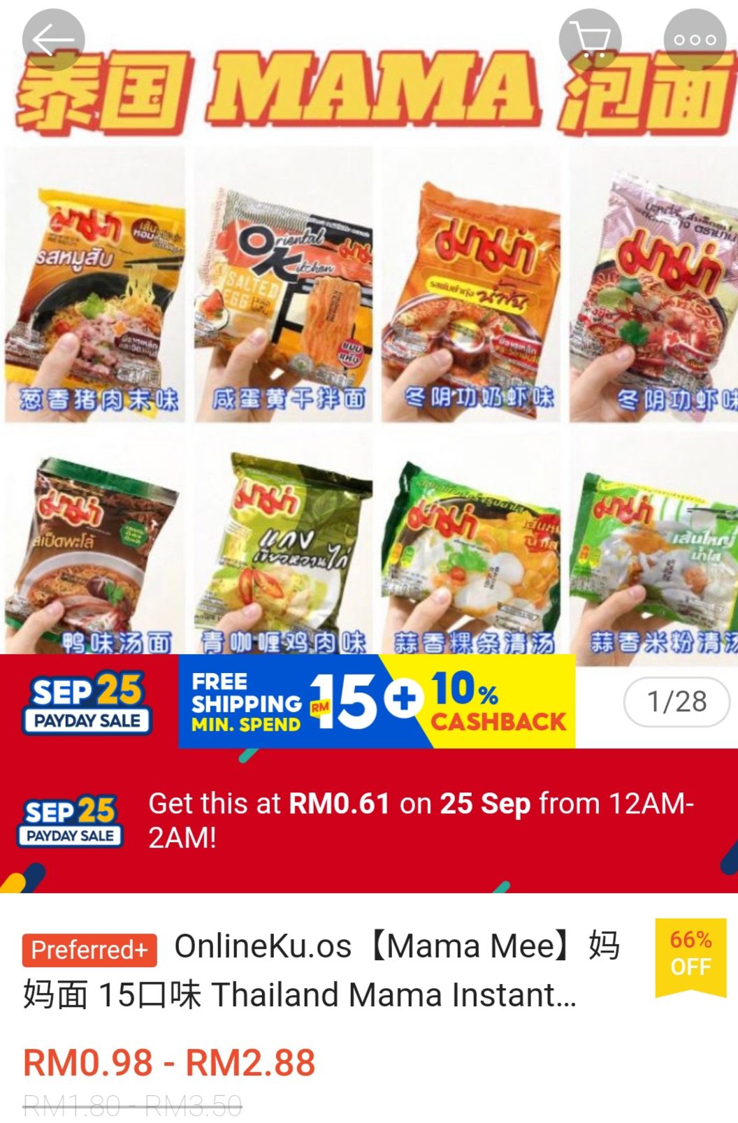 ▼ Thailand Mama Instant Noodles Pack 泰国妈妈面 – RM0.61(原价RM0.98 – RM3.50)