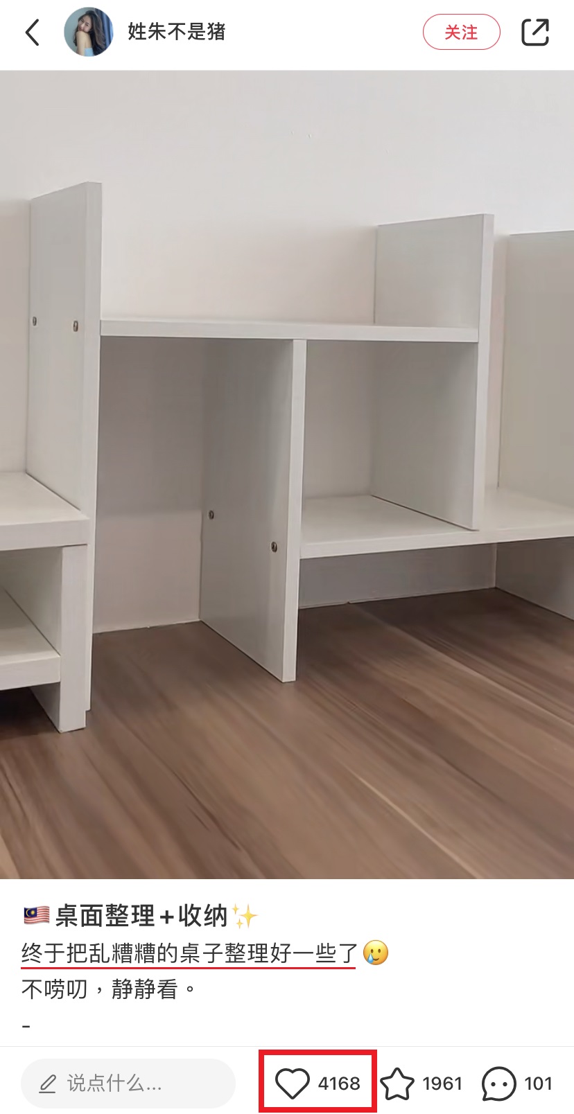 小红书博主分享视频以后,在短短几天内就累计超过4,100人点赞!经过整理以后的桌面看起来整齐干净,看了以后心情就好了许多!