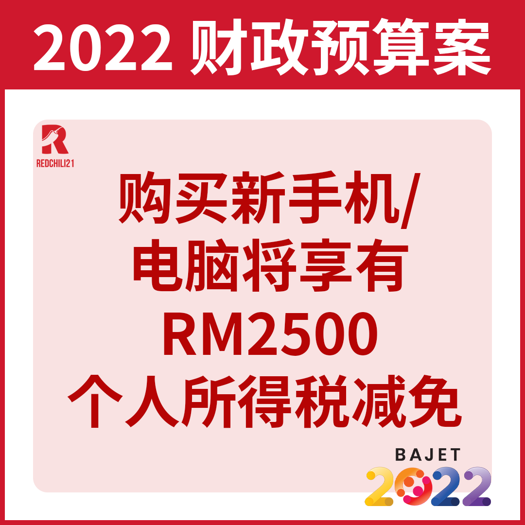 in 分享, 新闻, 首页 购买电子产品可扣税高达RM2500! by HM小编 October 29, 2021, 4:46 pm 2022年的财政预算案将在今日10月29日提呈至国会,由财政部长东姑扎夫鲁提呈的第二份财政预算案。 在2022年财政预算案中,财政部长东姑扎夫鲁宣布提到:购买个人电脑、智能手机或平板电脑者,将享有额外RM2500 税务减免。将延长至2022年12月31日! ※ 欲知更多2022财政预算案事项,可【点击这里】查看 Budget 2022 Next post
