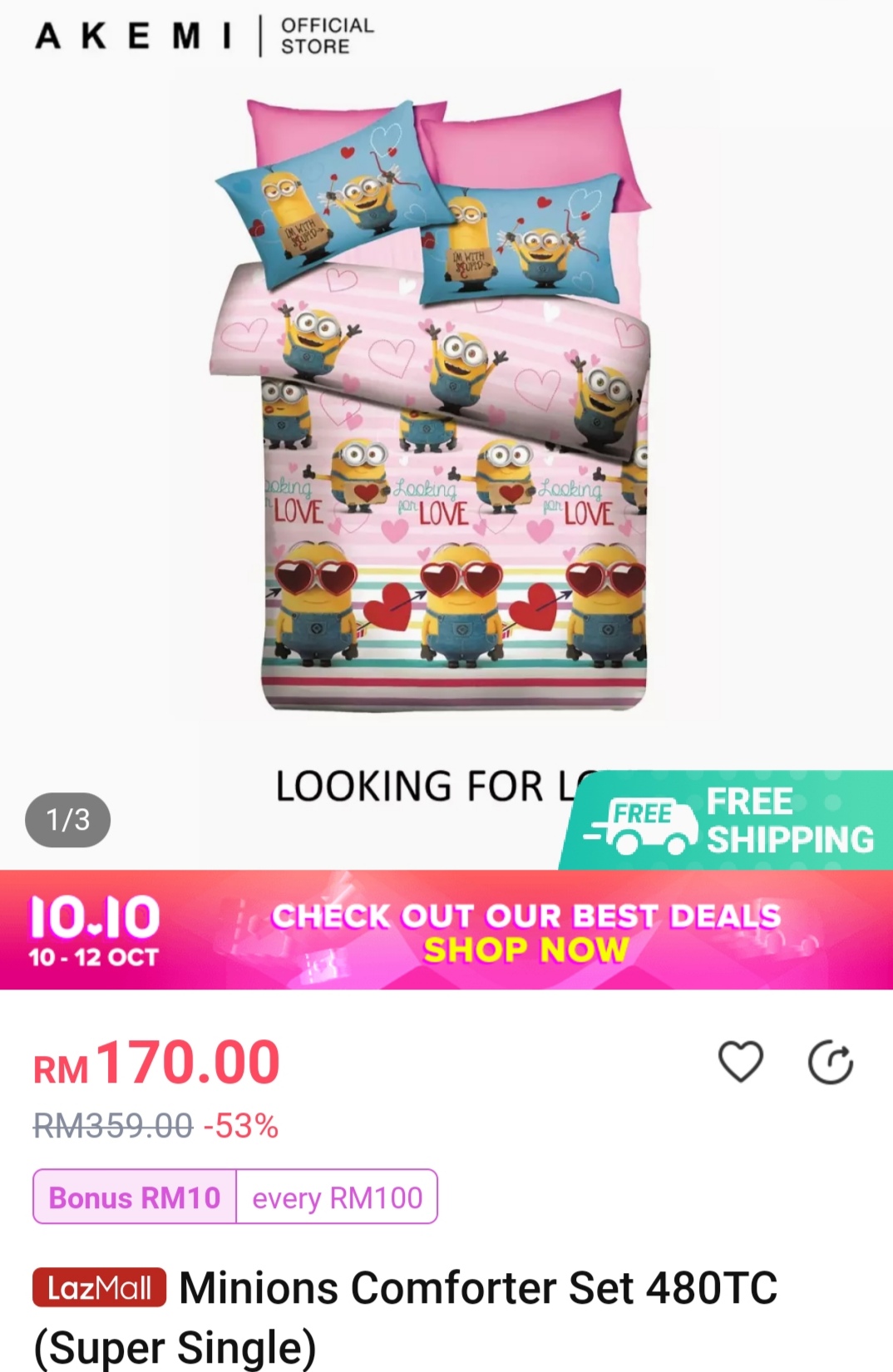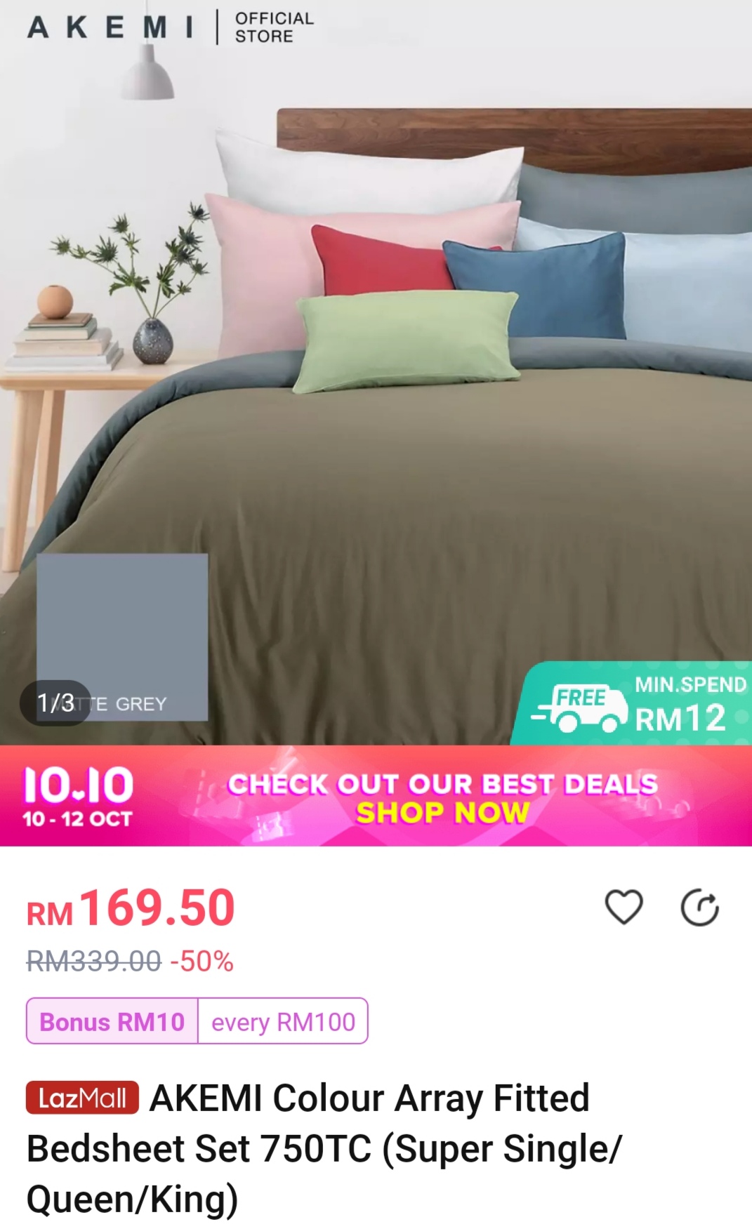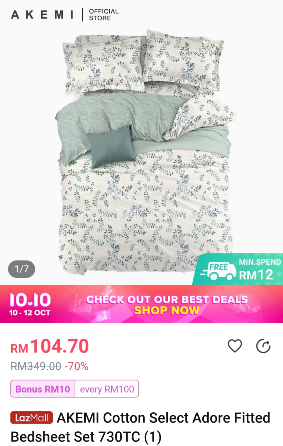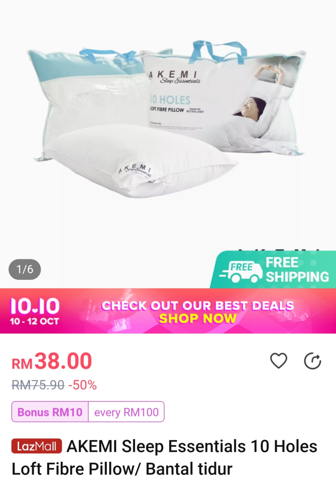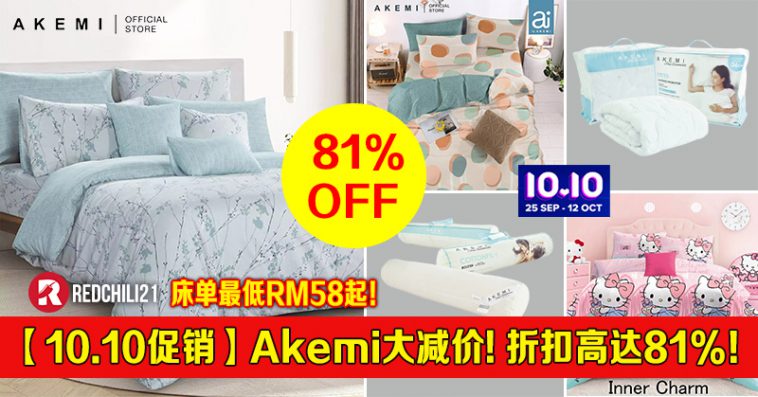想购买新枕头或新床单的朋友,注意了!大马Akemi 与Lazada 联合推出【10.10】促销优惠!折扣高达81%折扣优惠!