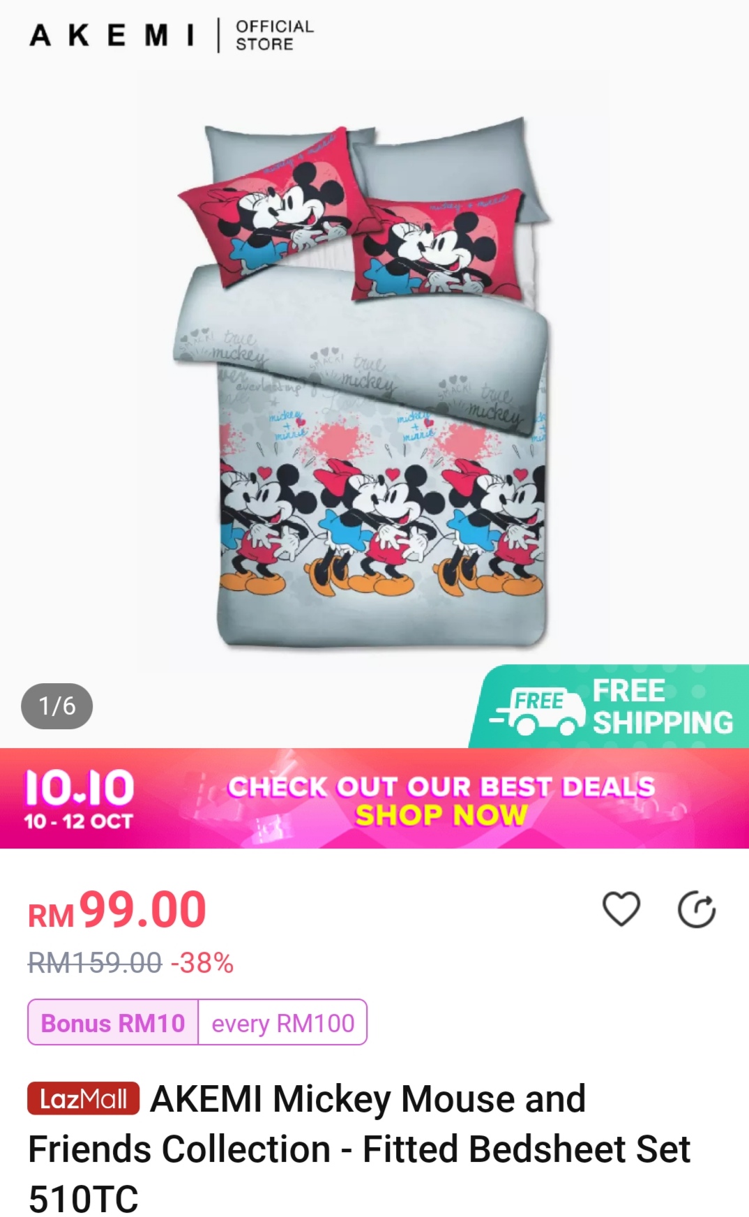 ▼ AKEMI Mickey Mouse and Friends Collection – Fitted Bedsheet Set 510TC – RM159 – RM239 RM99 – RM159