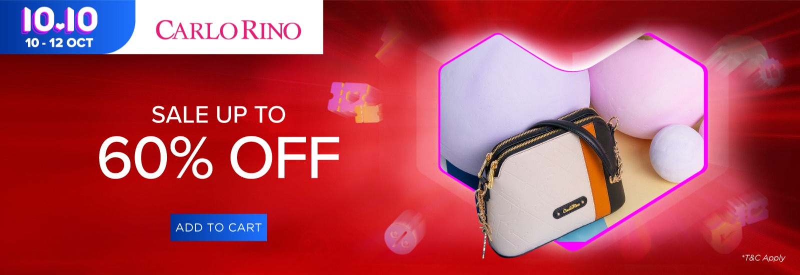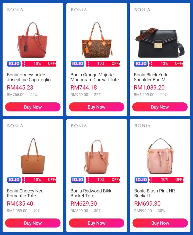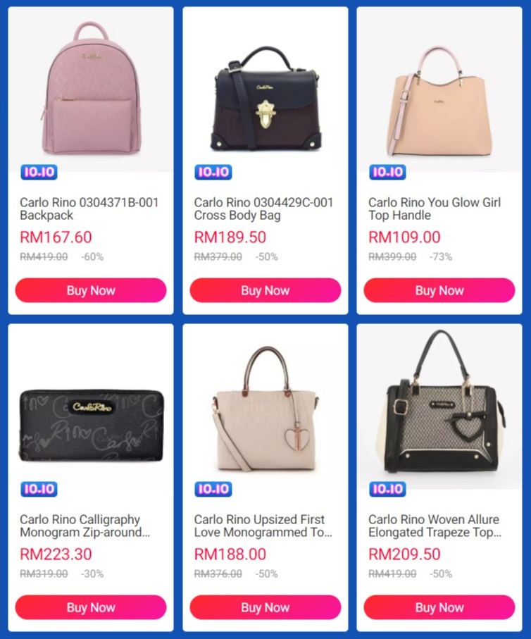 ▼ 10月10日当天包包折扣高达60%,并且凌晨12am 至2am 下单可享有10%折扣!倘若你消费到指定数额可额外折扣给你哦!