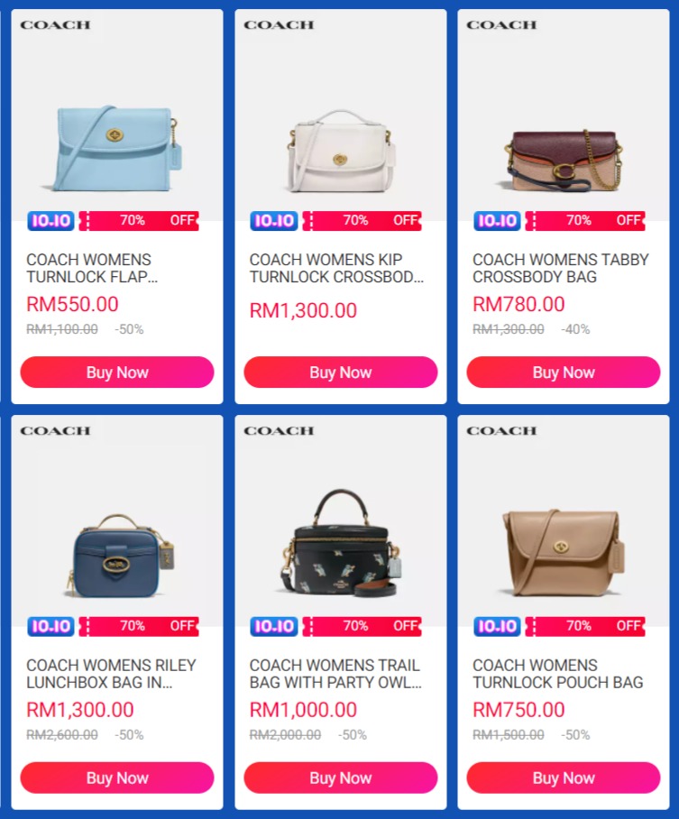 ② Coach – 折扣高达60% + 高达RM150折扣 + 免邮服务 + 送Free Gift