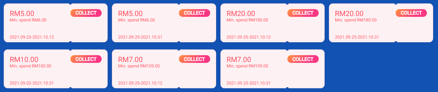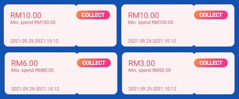• 消费RM50,折扣RM5(即日起至10月12日)