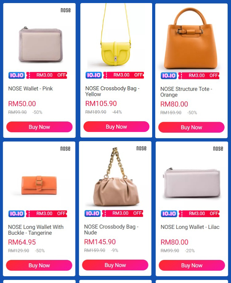 ⑧ NOSE – 折扣高达75% + 领取RM10 折扣券