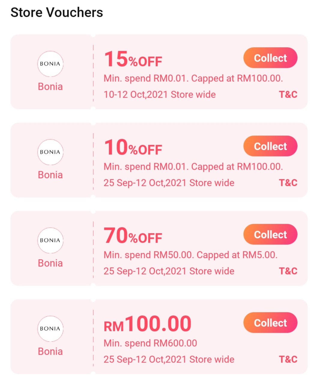 • 消费RM0.01,折扣15%,高达RM100 折扣(即日起至10月12日)