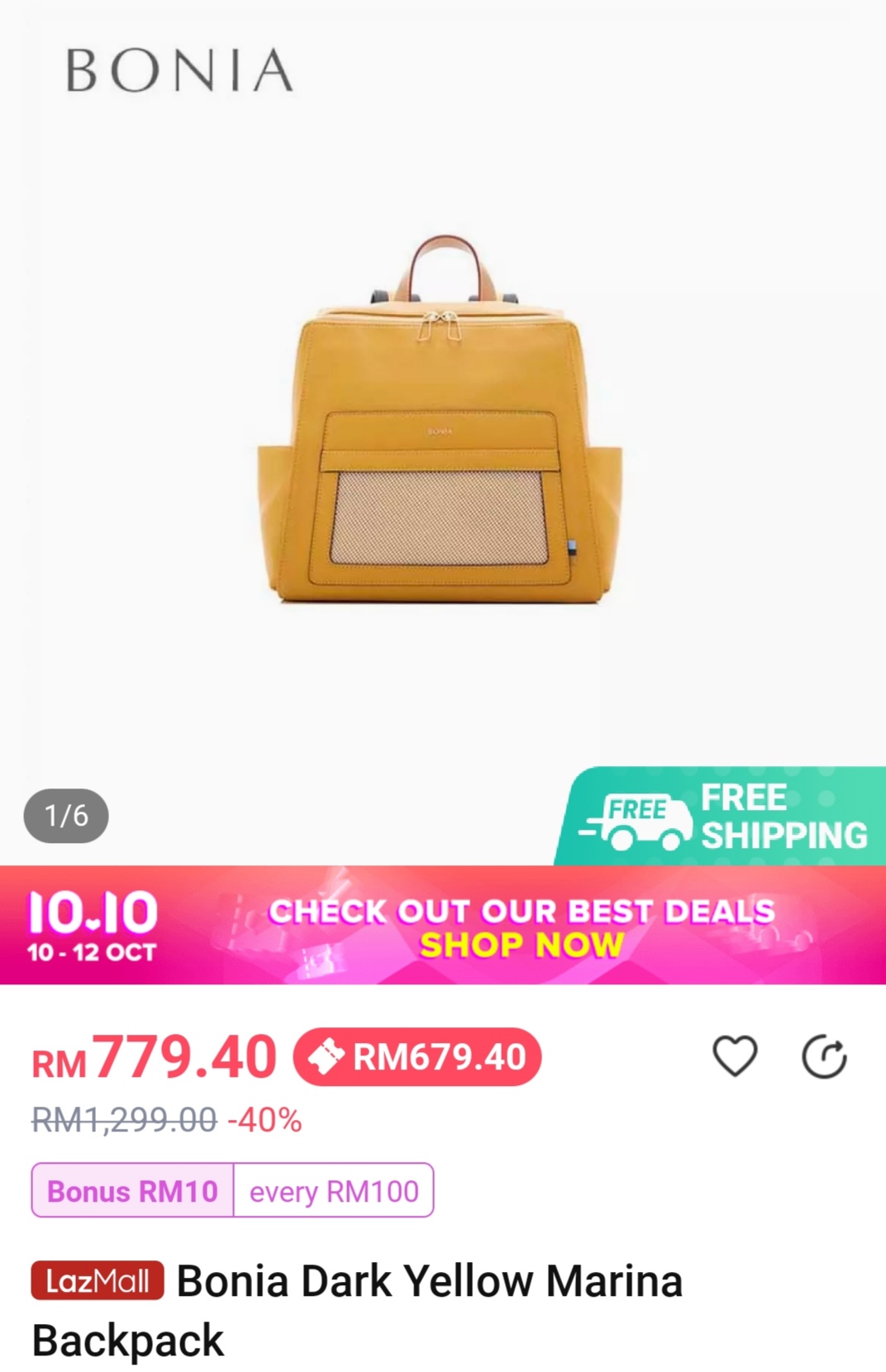 ▼ 例如:这款Bonia Dark Yellow Marina Backpack(原价RM1299)折扣40%+店家折扣券,只需RM679.40!