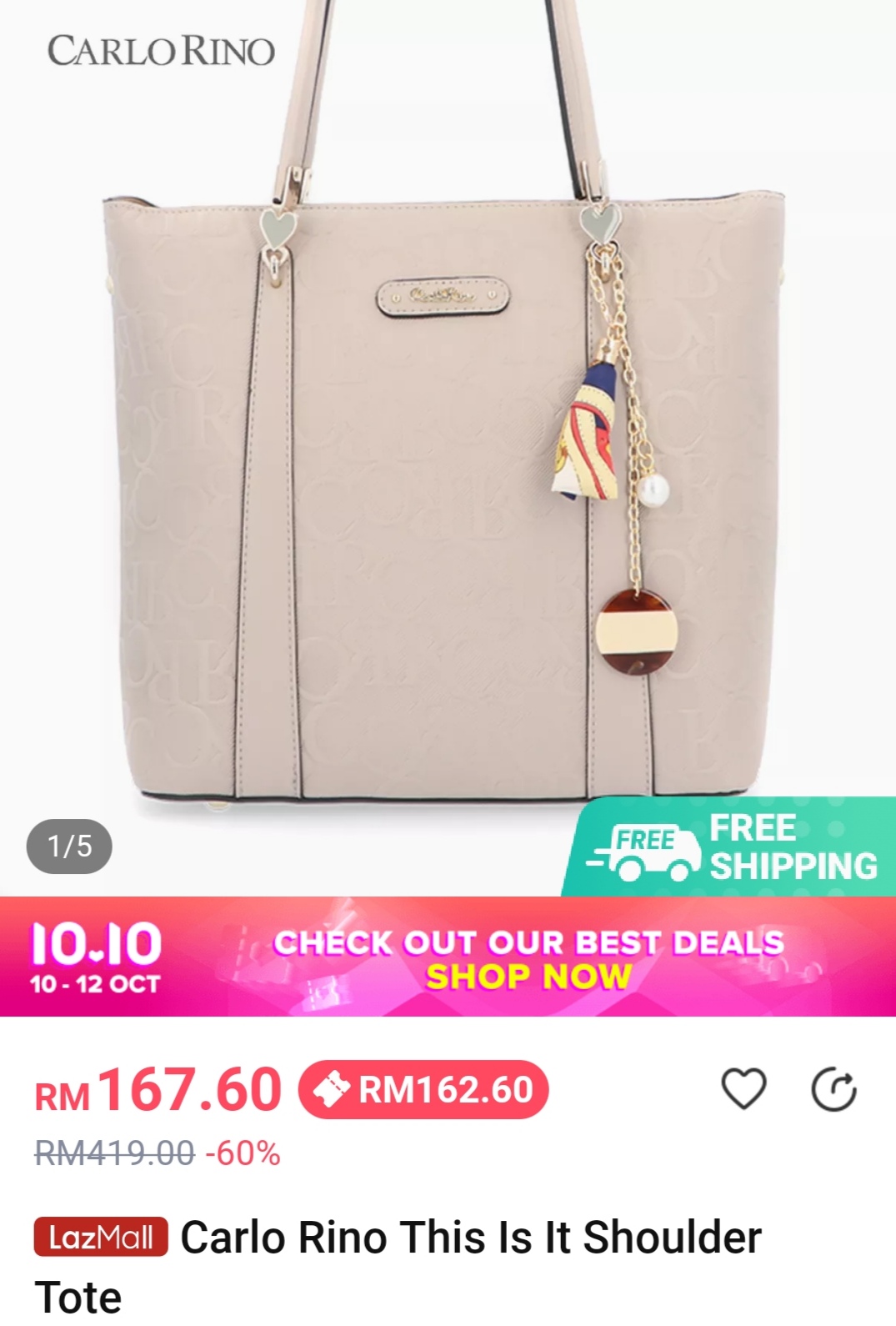 ▼ 例如:这款Carlo Rino This Is It Shoulder Tote(原价RM419)领取店家折扣券,只需RM162.60!