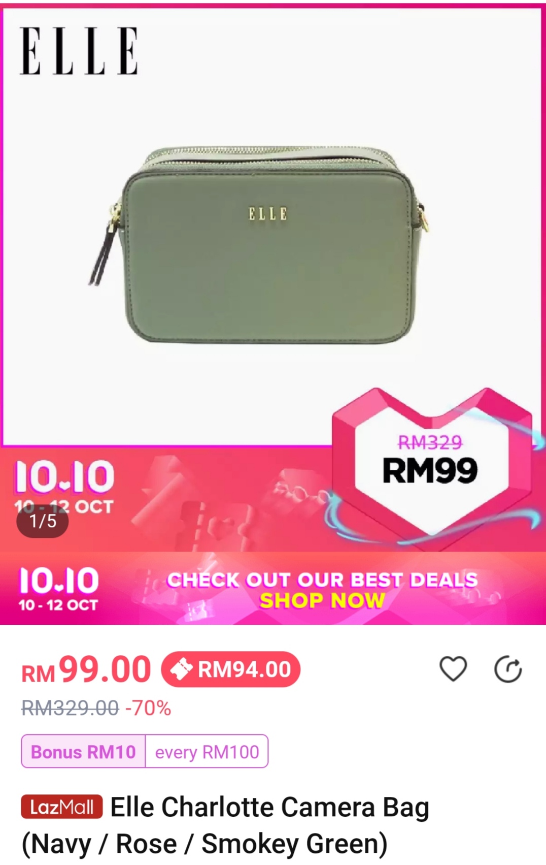 ▼ 例如:这款Elle Charlotte Camera Bag(原价RM329)折扣70%+ 店家折扣券,只需RM94!