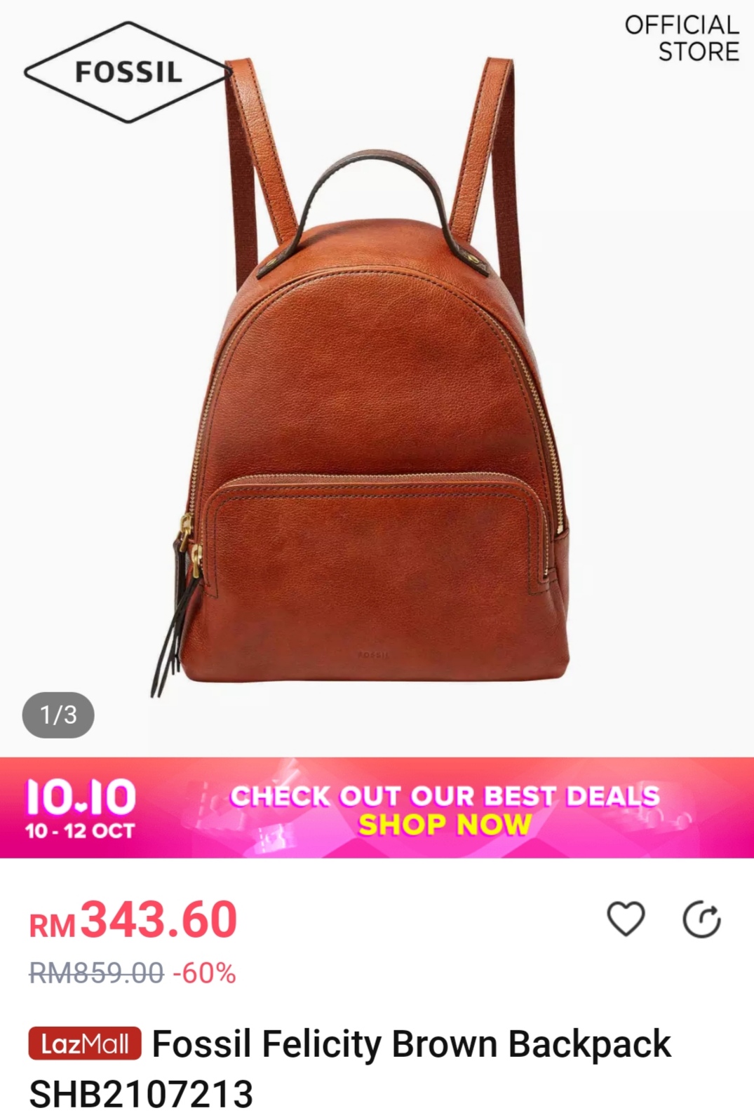 ▼ Fossil Felicity Brown Backpack SHB2107213(原价RM859)折扣60%,只需RM343.60!