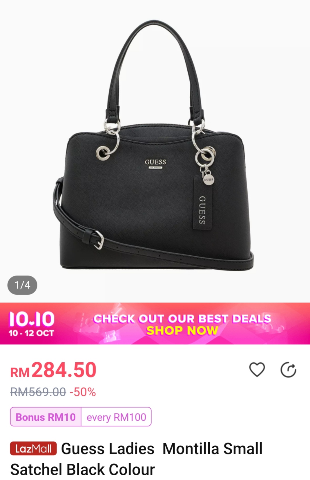 ▼ 例如:这款Guess Ladies Montilla Small Satchel Black Colour(原价RM569)折扣50%,只需RM284.50!