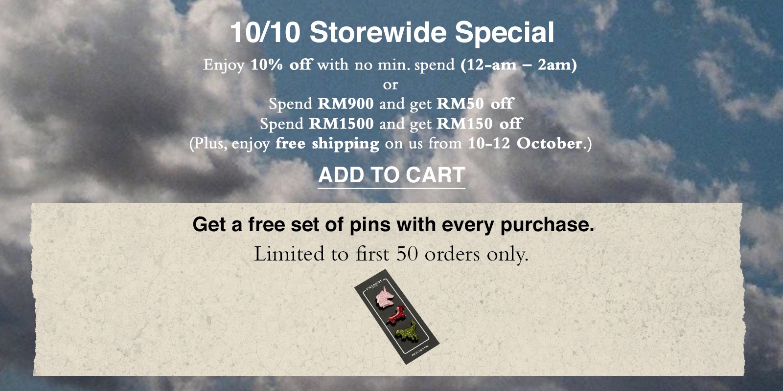 • 消费RM159,折扣10%(仅限10月10日至10月12日)