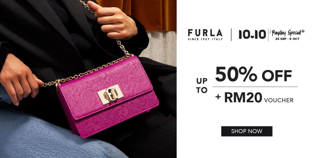 Furla 意大利高端品牌包包在【10.10】这天推出折扣高达50%,另外在领取RM20 折扣券!