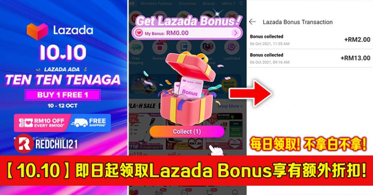 【10.10促销】即日起领取Lazada Bonus享有额外折扣!不拿白不拿!