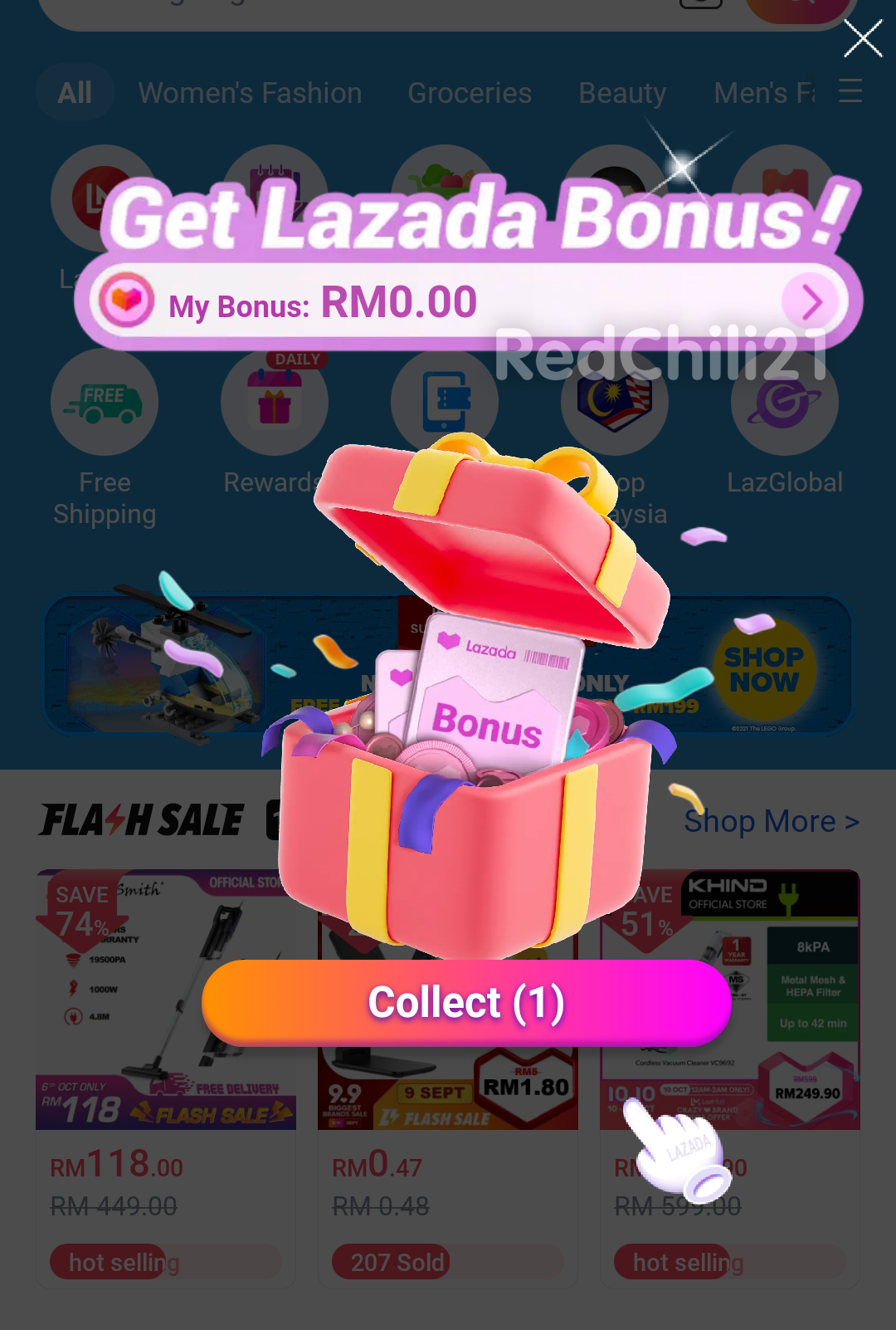 步骤1:只要你打开Lazada App,系统就会显示Lazada Bonus,点击“Collect”领取。