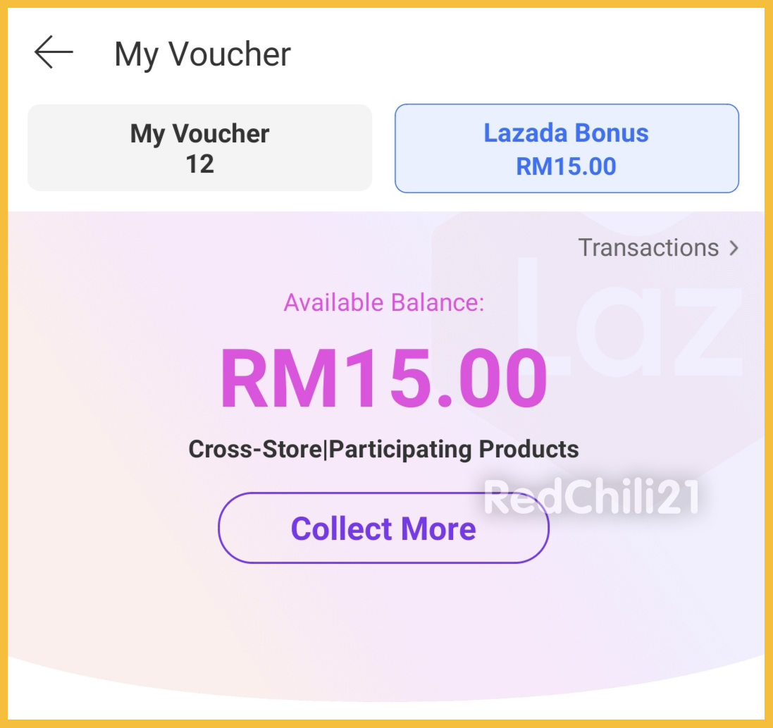 步骤2:你可在My Voucher 页面,查询已收集的Lazada Bonus 奖励。