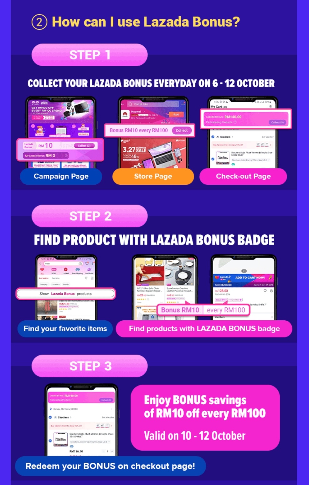 ▼ 如何使用Lazada Bonus?!(10月10日至10月12日期间使用)