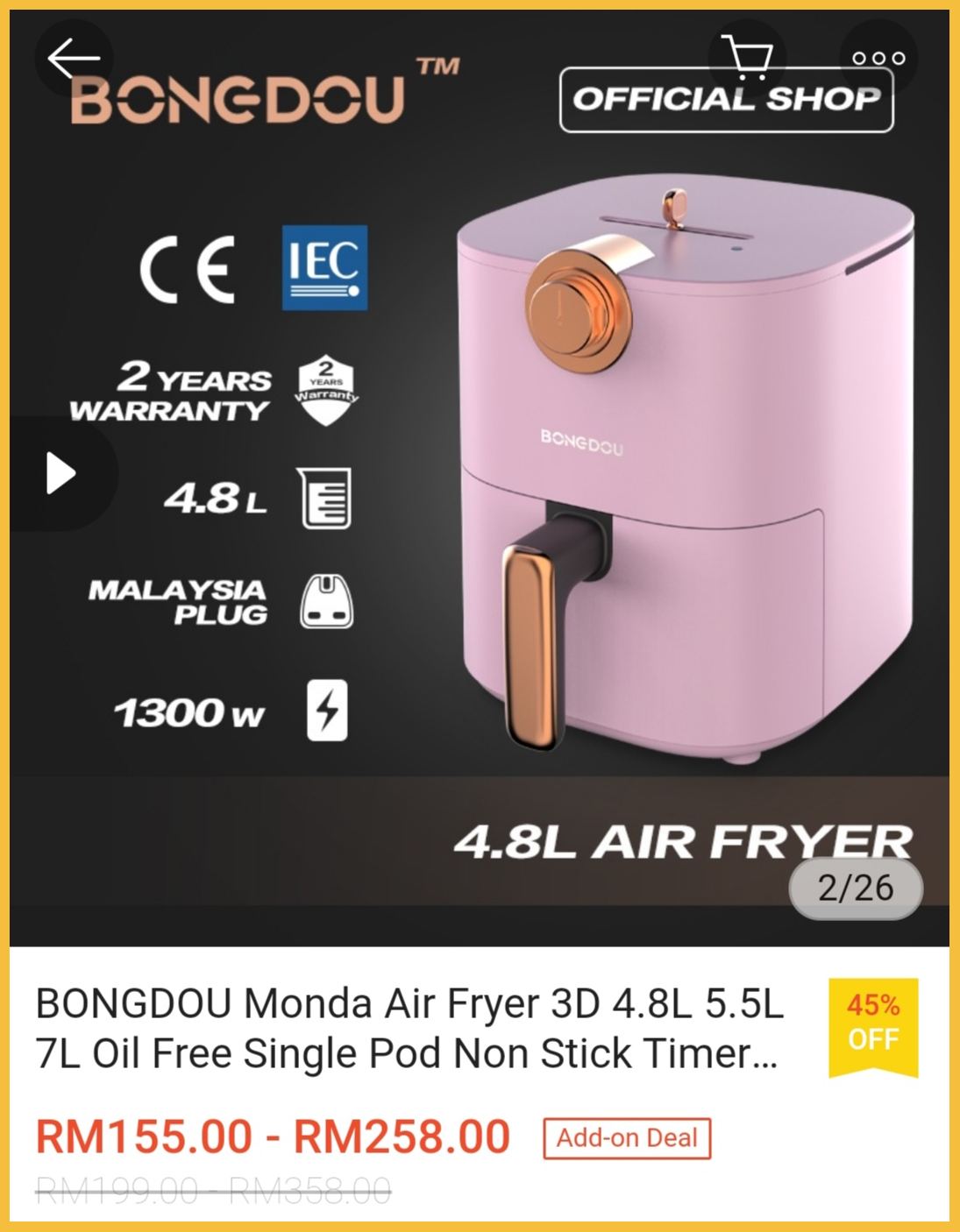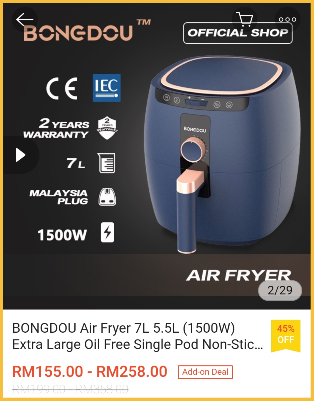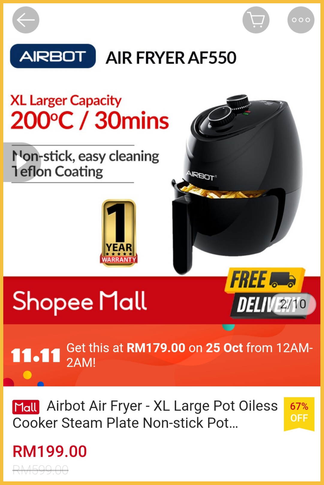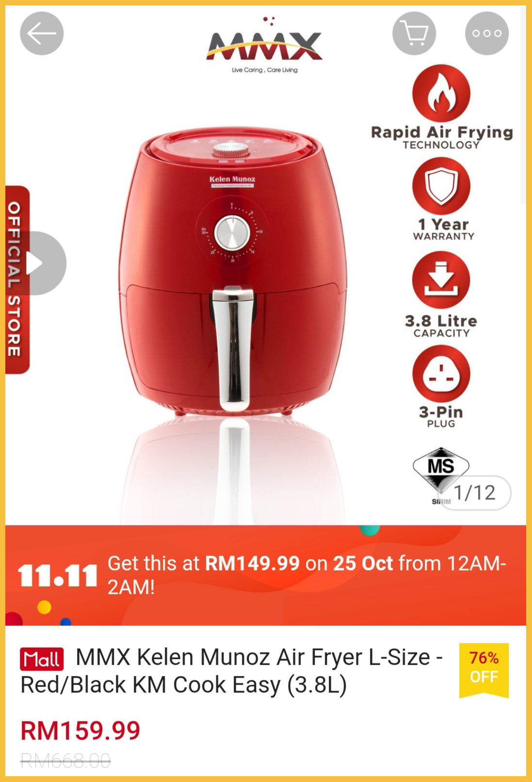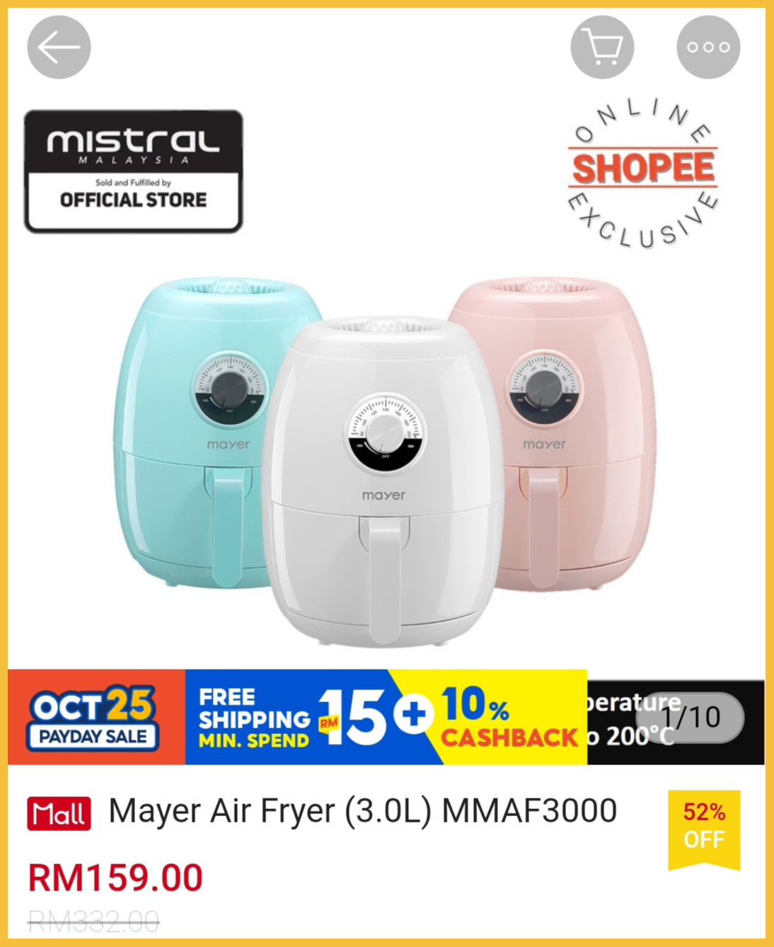 为了配合【10月25日发薪日】的到来,各大品牌气炸锅推出大折扣,最低只需RM129.99!