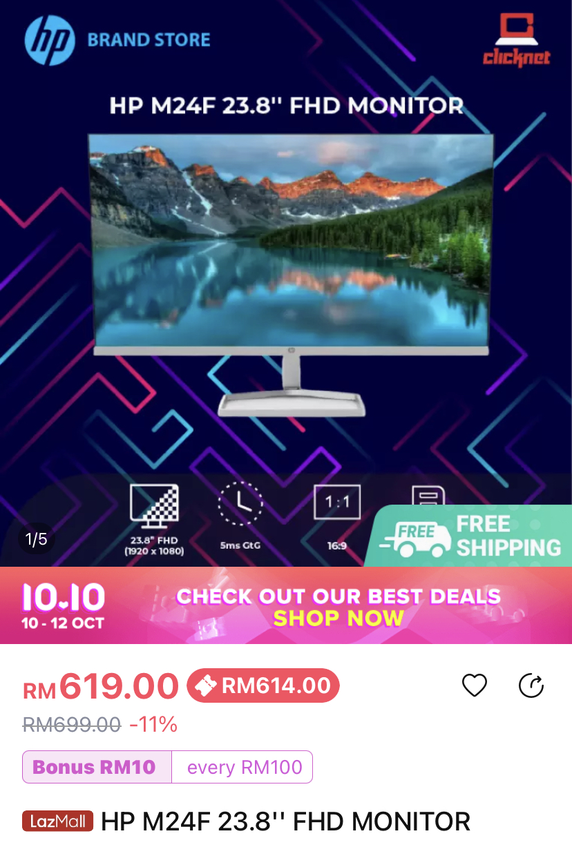 ▼  23.8 Inch Monitor – RM688 RM548(10月10日优惠)