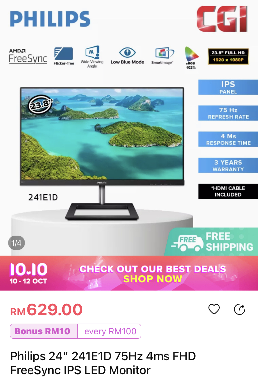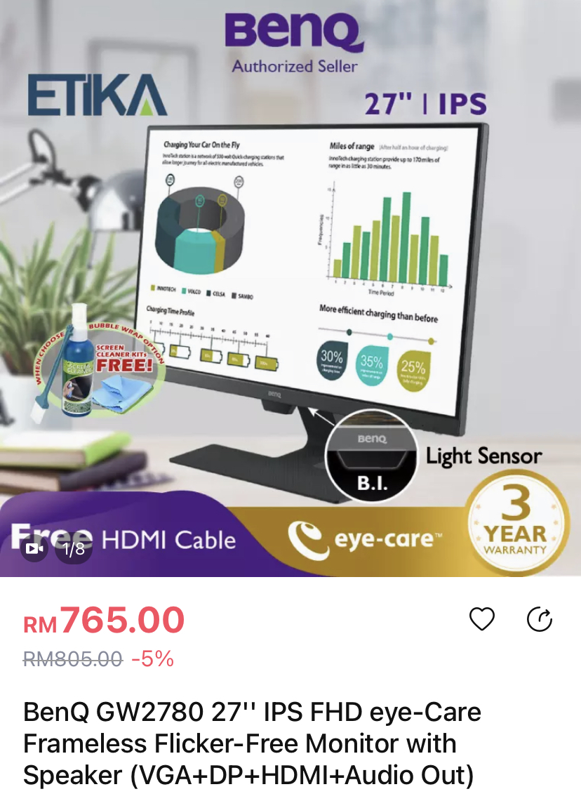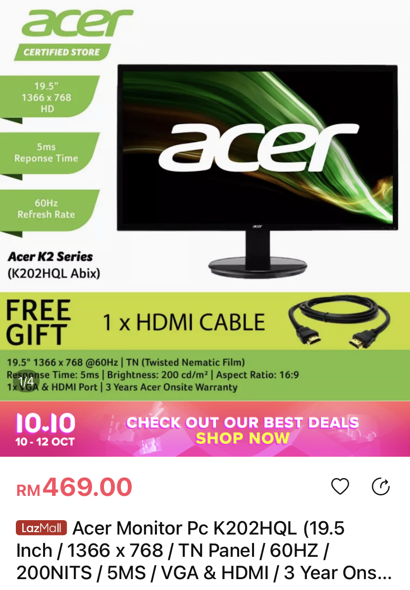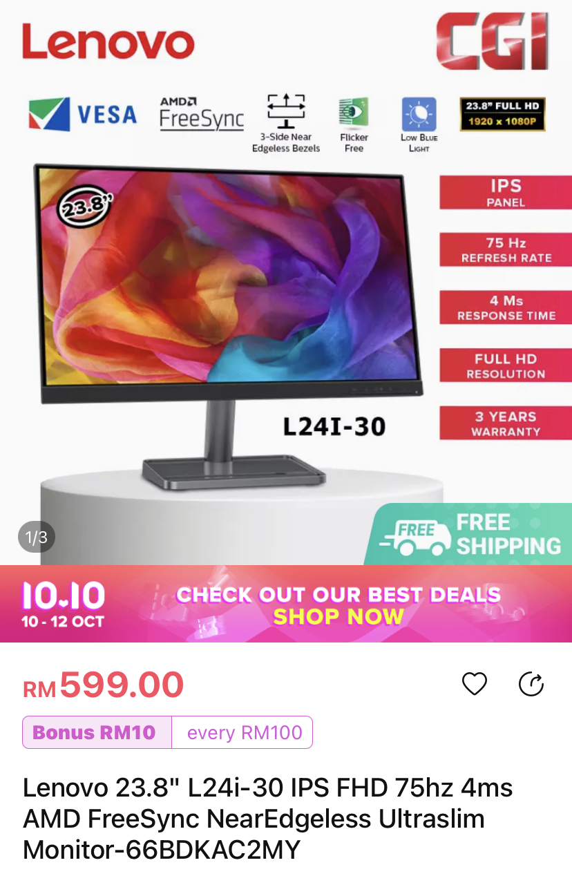 无论是工作、学习还是休闲的时候打游戏、追剧,有一个功能好又宽大的电脑显示器(Monitor)就再好不过了!以下10款来自不同品牌的monitor,全是RM800以内的!这次10.10买更便宜!