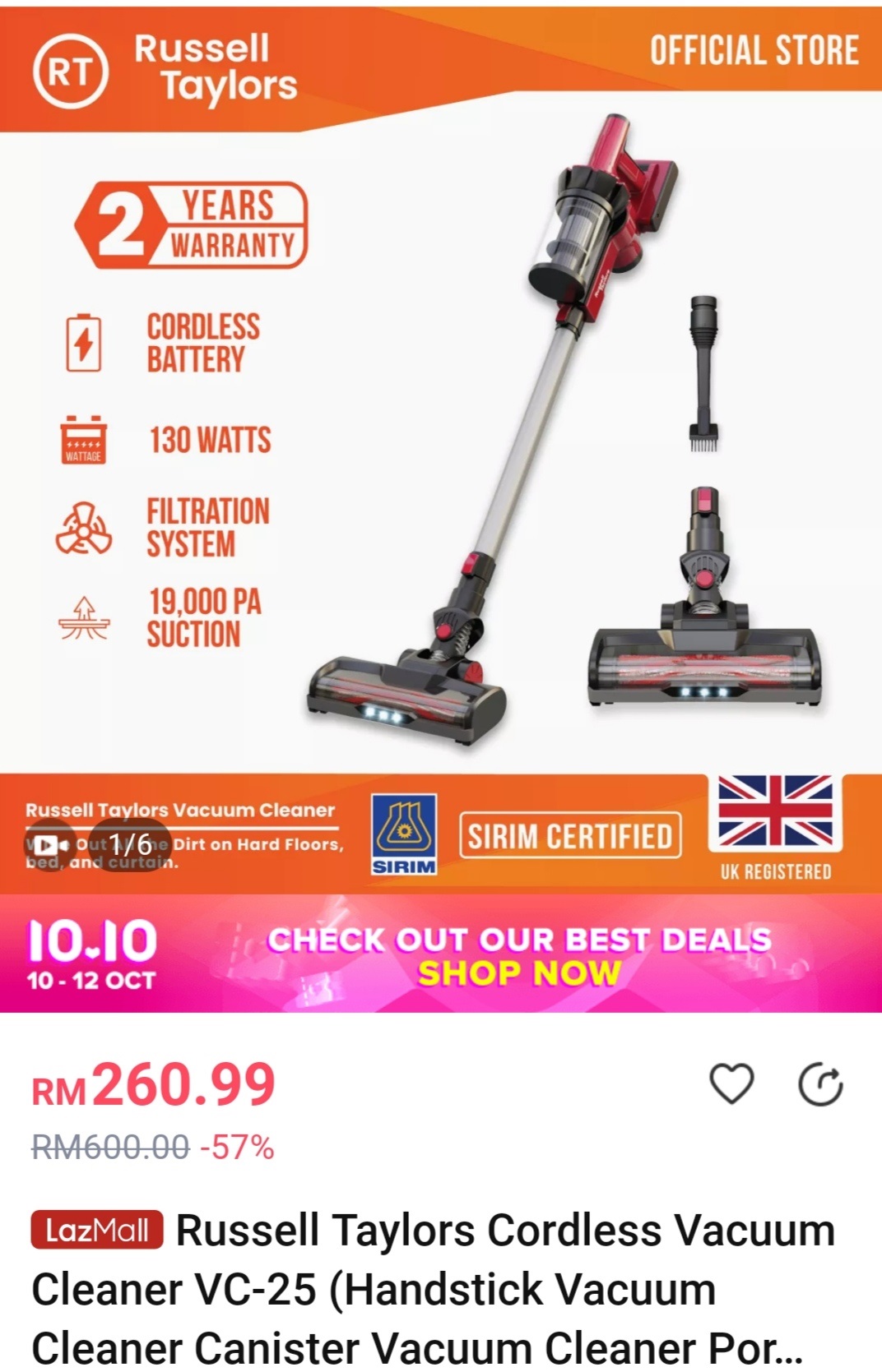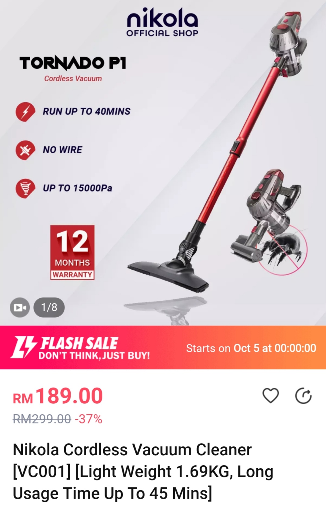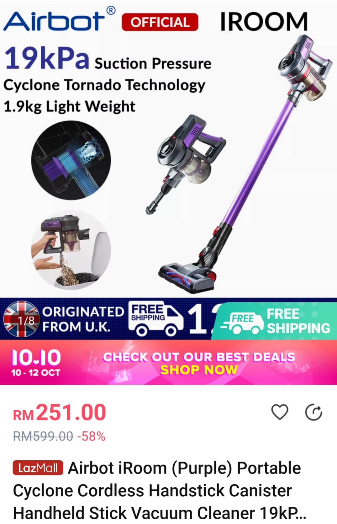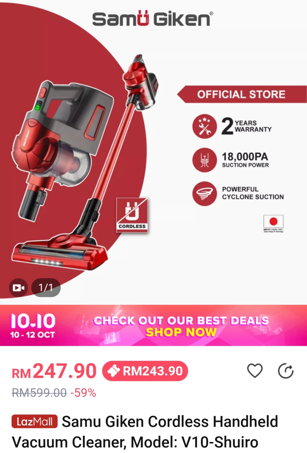 以下是10款方便又实惠的无线吸尘机!偷偷告诉你在9月9日购买享有折扣优惠,且价格不超过RM300 哦!