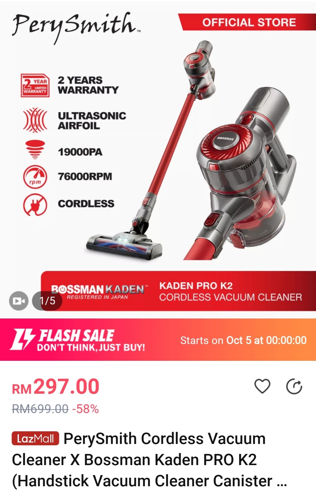 ① PerySmith Cordless Vacuum Cleaner X Bossman Kaden PRO K2