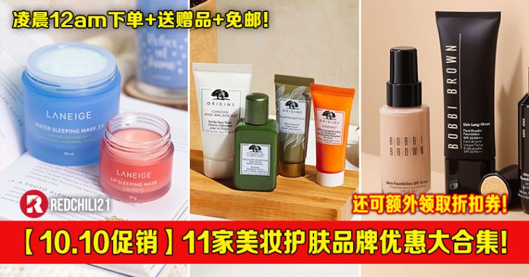 以下小编为大家列出11家美妆护肤品牌推出【10.10】优惠合集!看看哪一家美妆护肤品牌是你常用的,可趁促销日下单还便宜你去专柜购买哦!