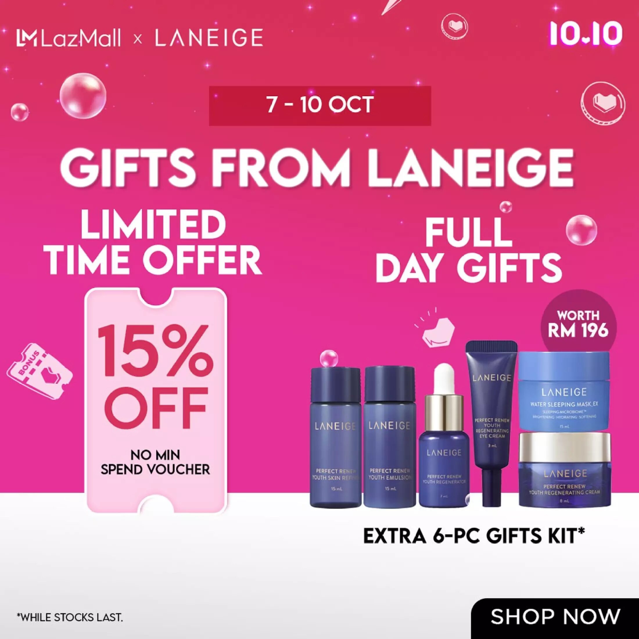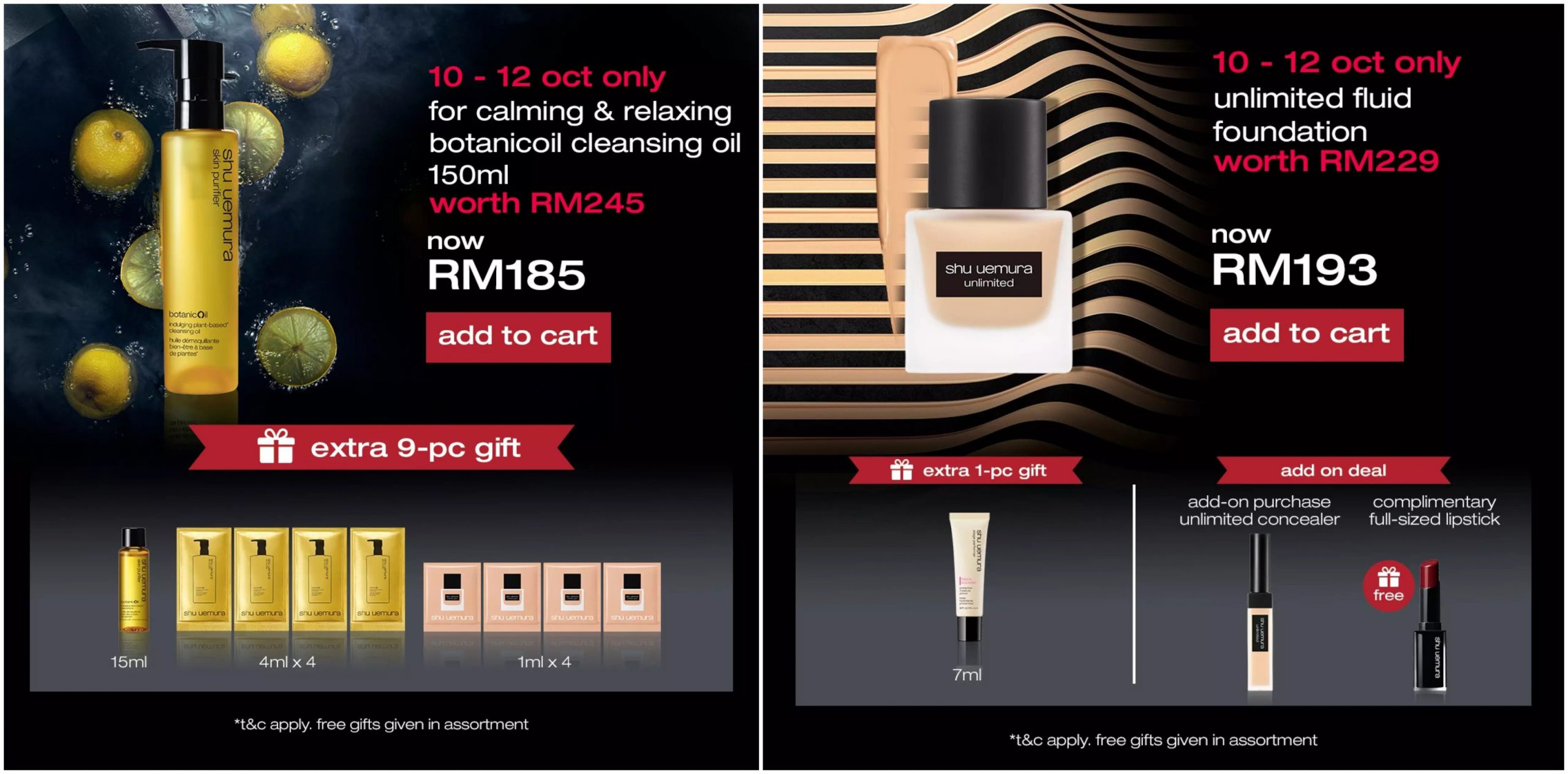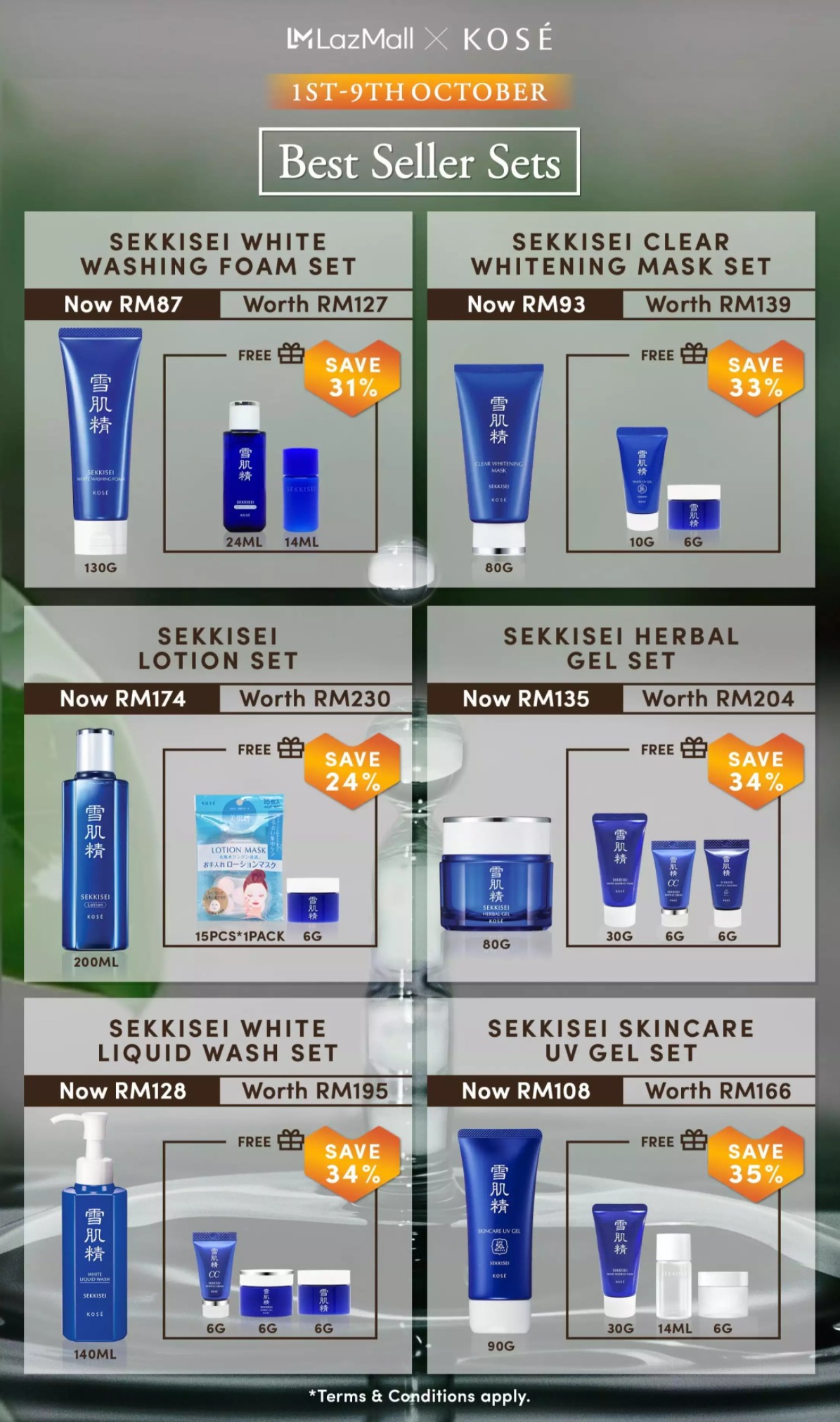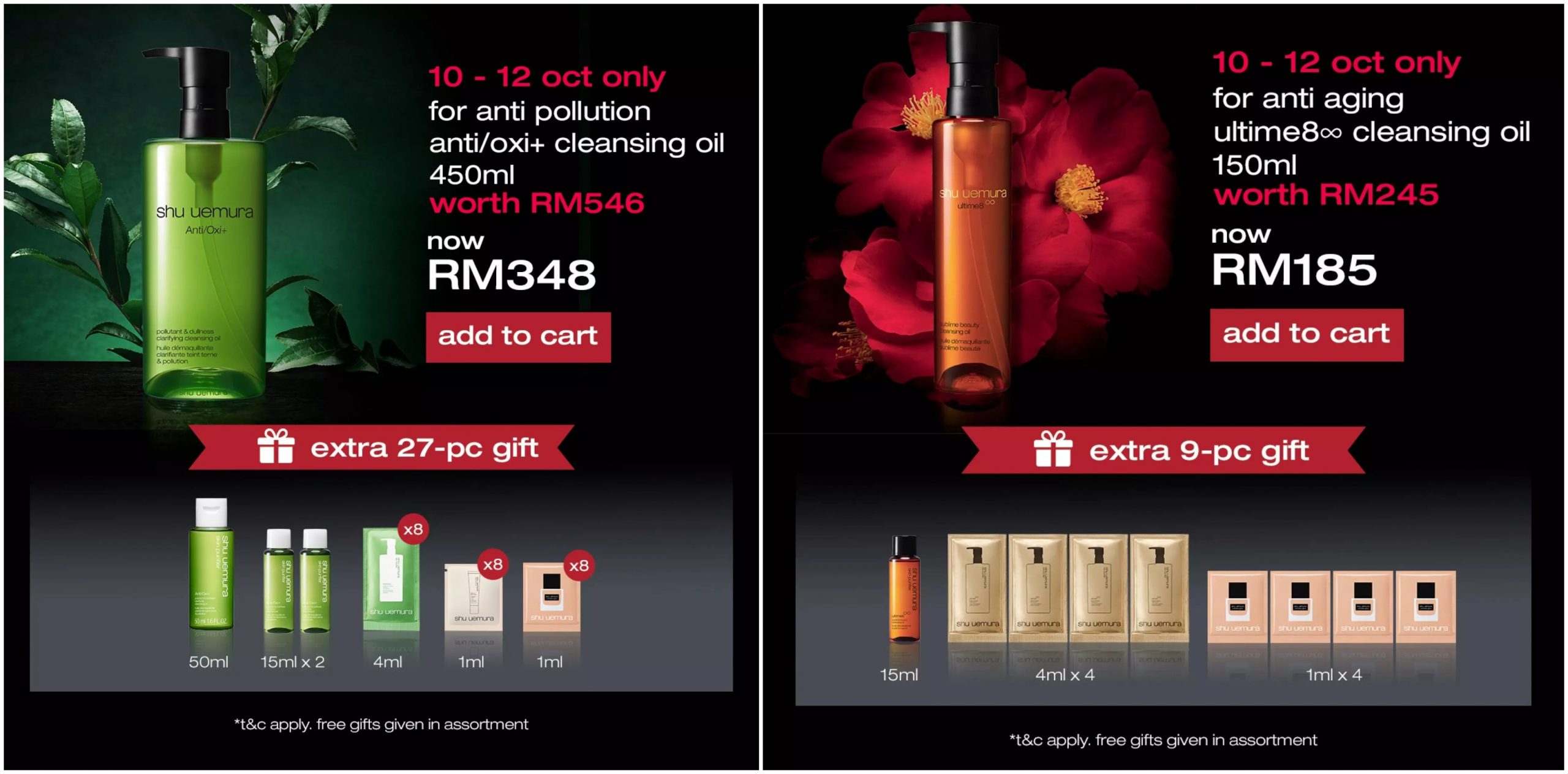 ▼ 即日起至10月9日期间,消费RM150 或以上可免费获得10样赠品(价值RM106)!