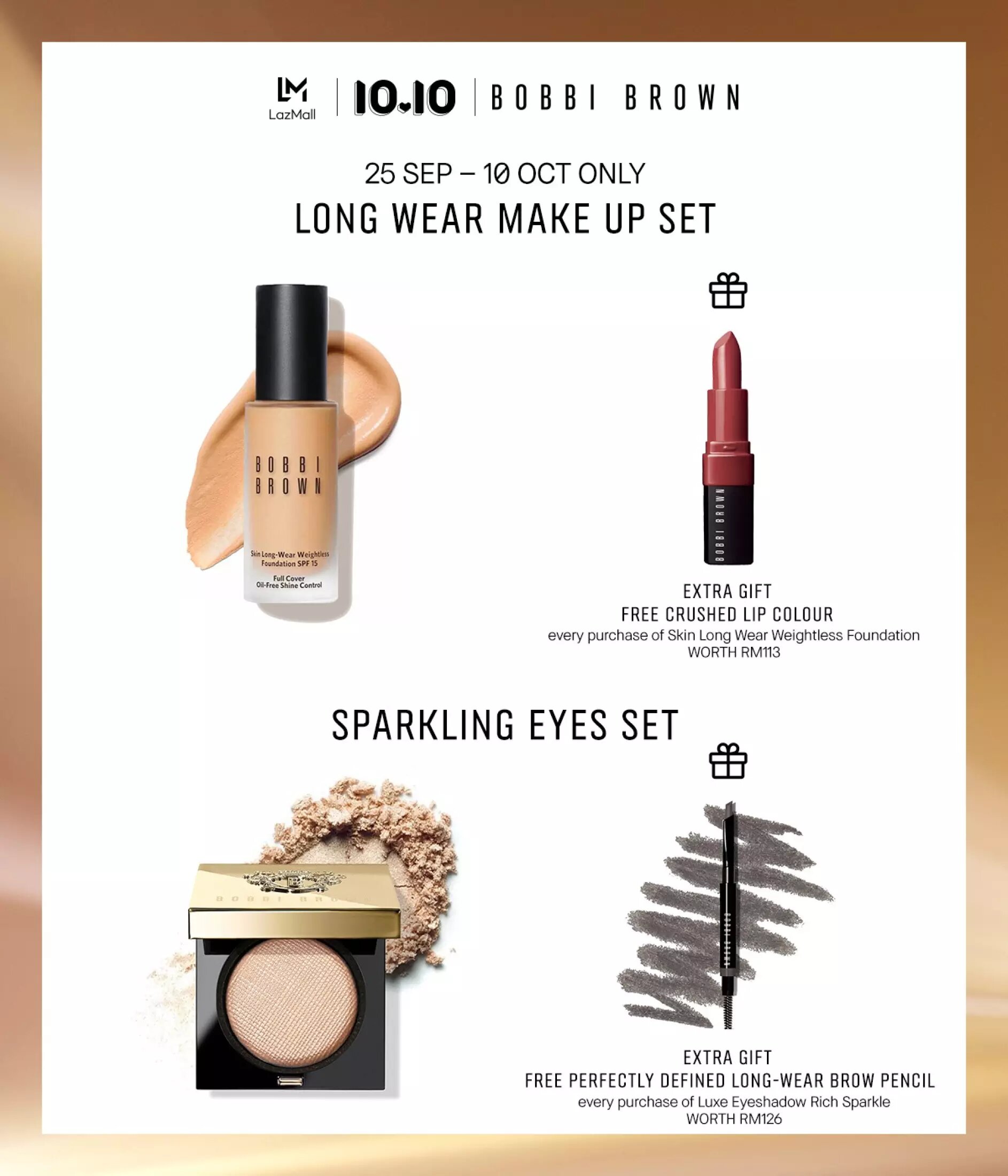 - Bobbi Brown Luxe Eye Shadow Rich Sparkle 2.5g – RM153(送出一支价值RM126 的眉笔);购买【点击这里】