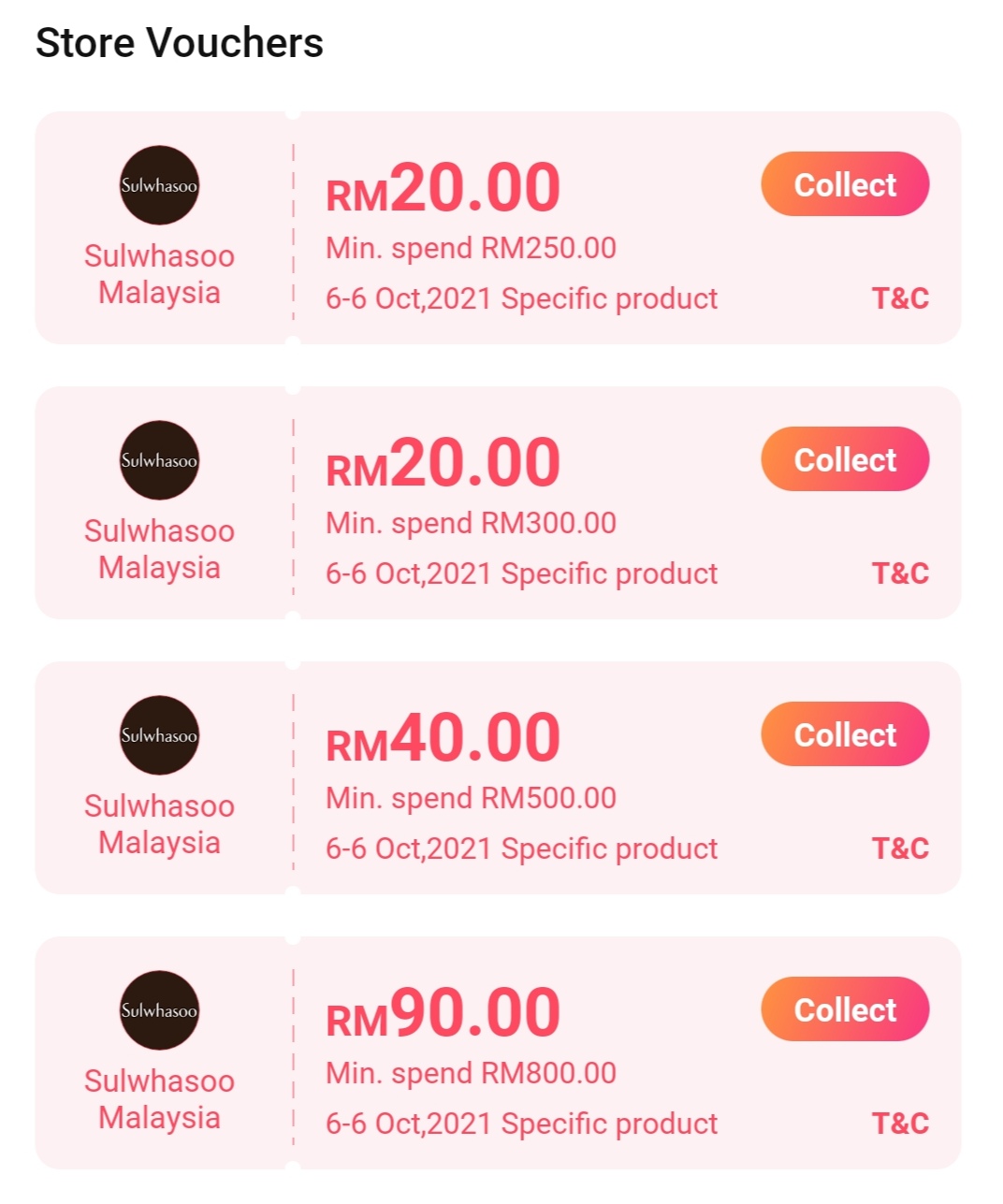 ▼ Sulwhasoo 推出以下4张折扣券,折扣高达RM90!在你付款前,记得一定要领取哦!