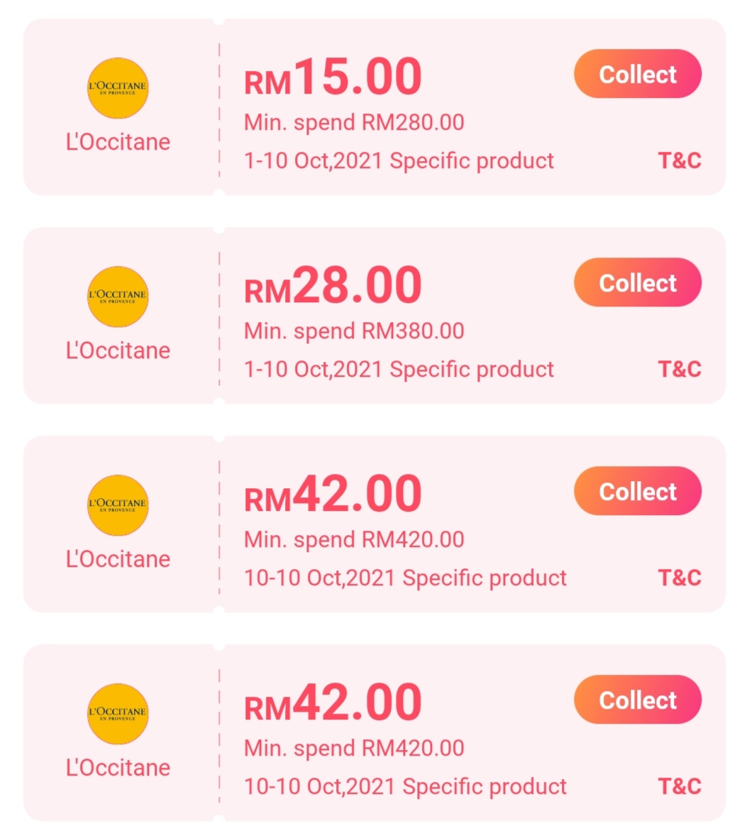 - 消费RM420 折扣RM42(仅限10月10日使用)
