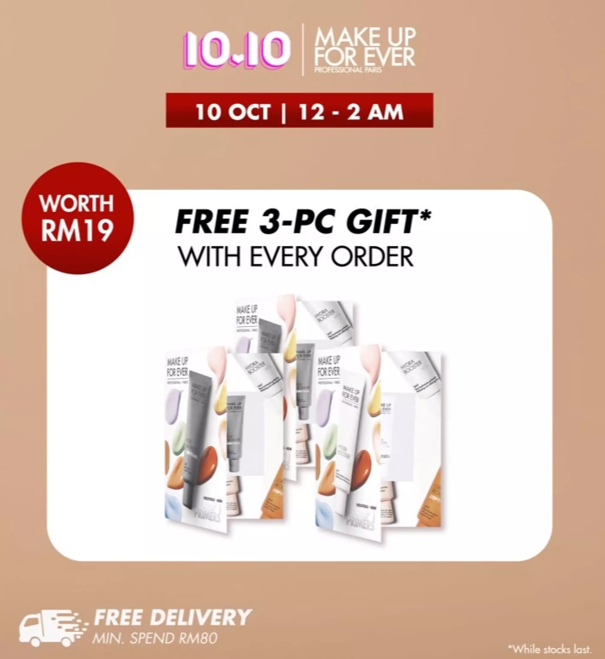 ▼ 10月10日当天凌晨12am 至2am,每消费可获得2样赠品(价值RM19)!