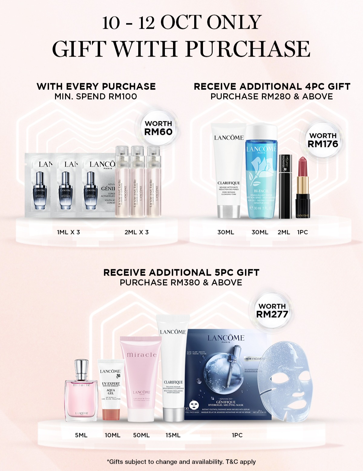 - 消费RM380 送出(价值RM277)5样赠品