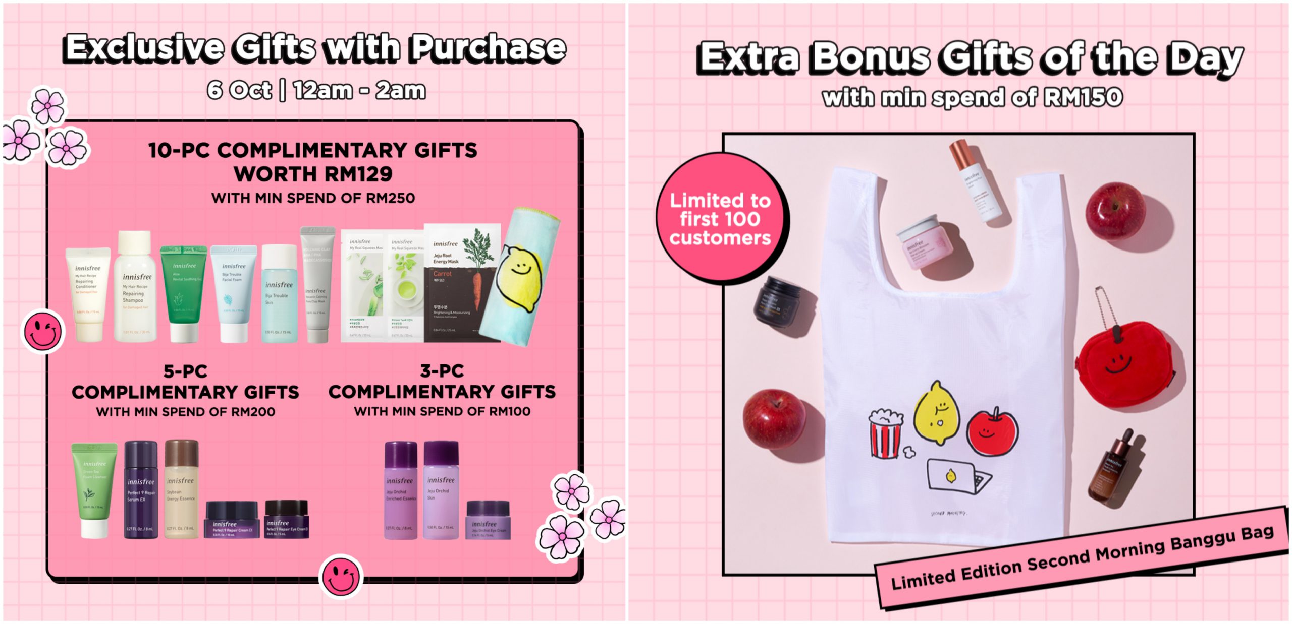 - 消费RM150 免费送出限量版Second Morning Banggu Bag(首100位顾客)