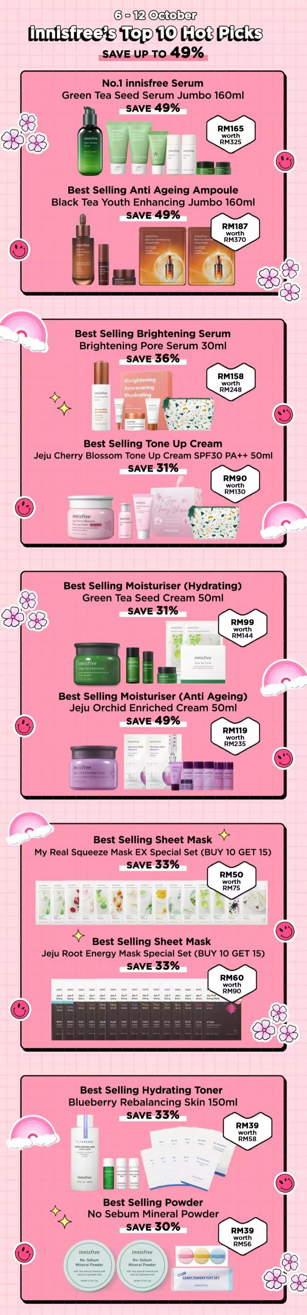 ▼ 10月6日至12日期间,Innisfree Top 10 畅销产品享有高达49%折扣!