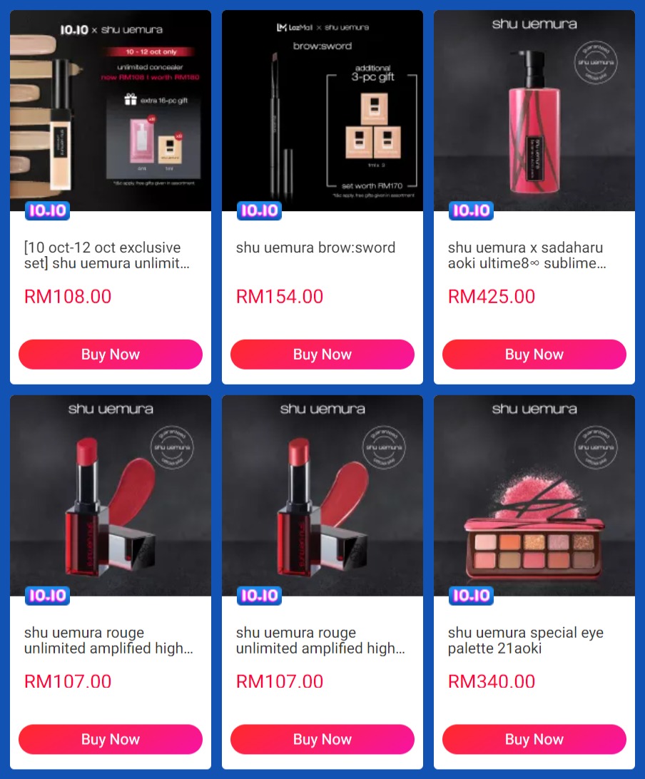 大马网购平台Lazada 与众多美妆护肤产品旗舰店推出【10.10 品牌购物节】大促销!参与美妆护肤品牌Lancome、Origins、shu uemura、Innisfree、MAKE UP FOR EVER 等享有折扣优惠!