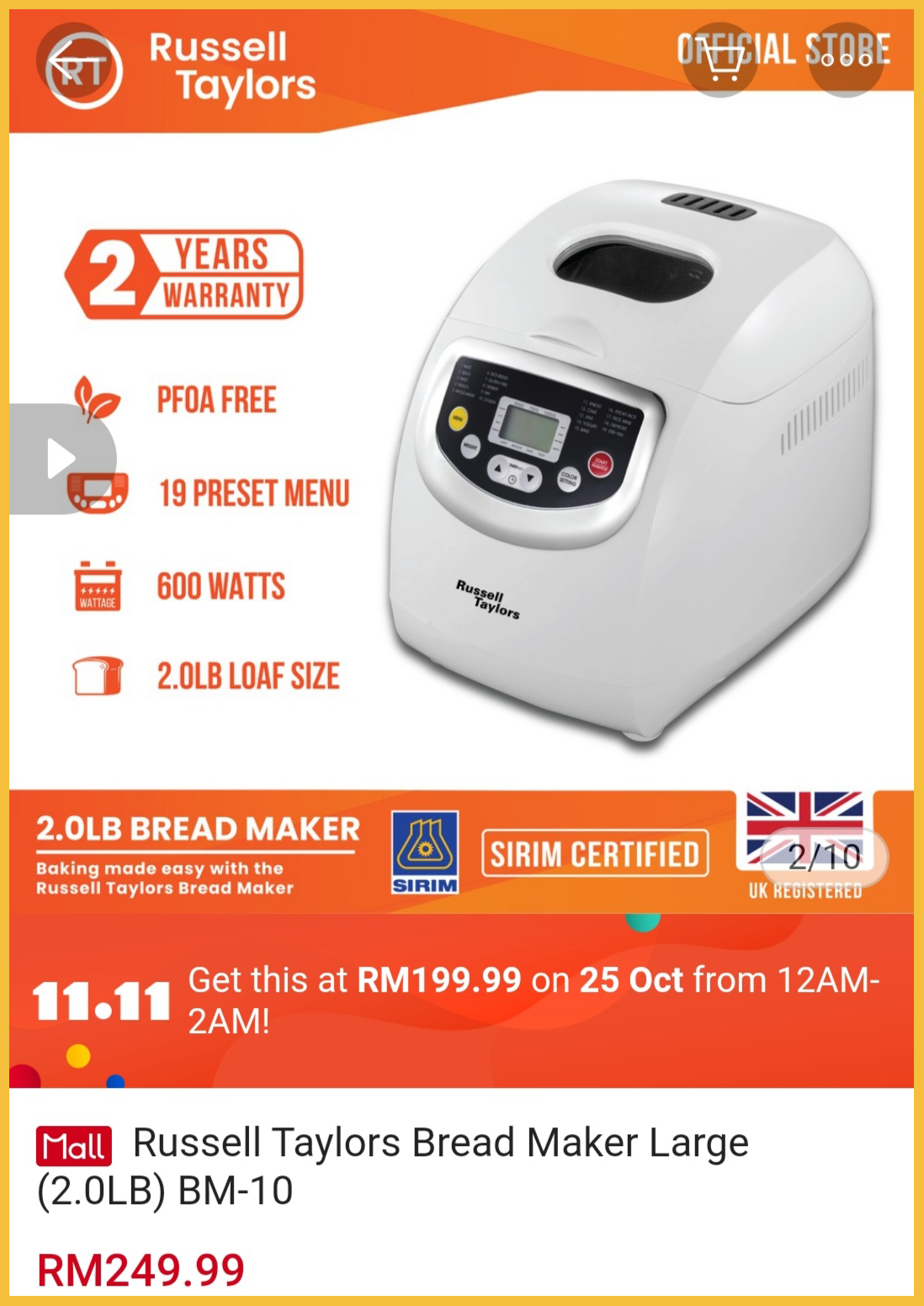 需要注意的是,以上这些品牌面包机的优惠日将在10月25日凌晨12am 开始推出!有考虑买面包机的朋友,可在这促销日这天购买!