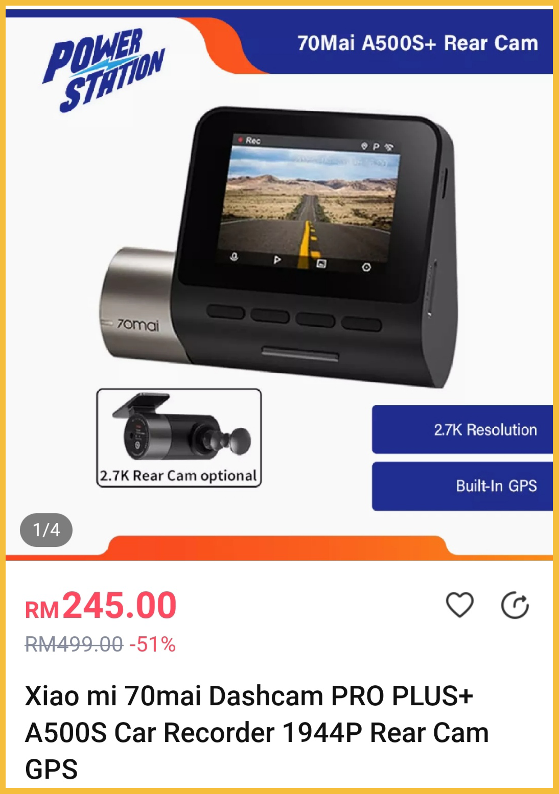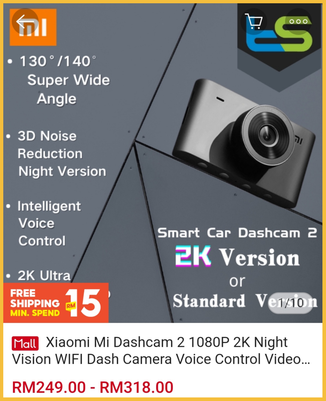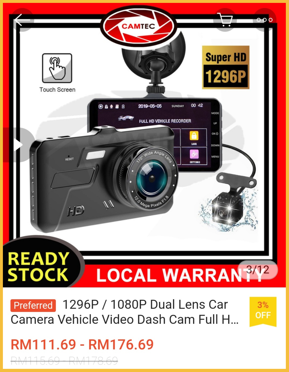 - Shopee 价格:RM111.69(Blue Screen 1080P);RM132.89(Black Screen 1296P)