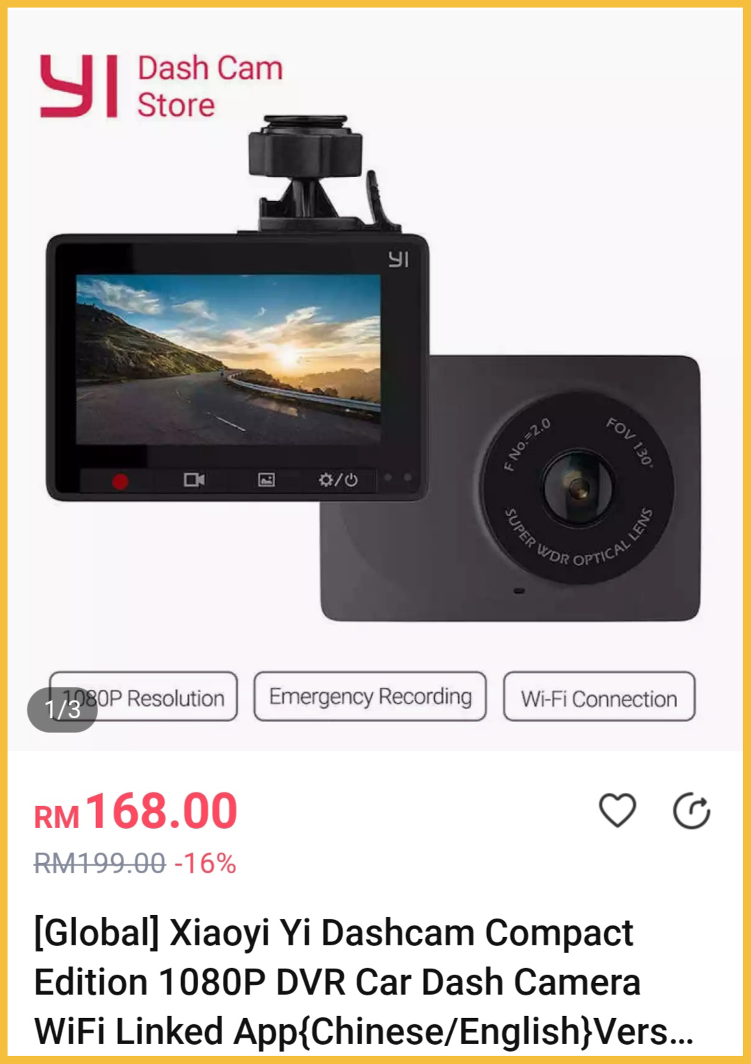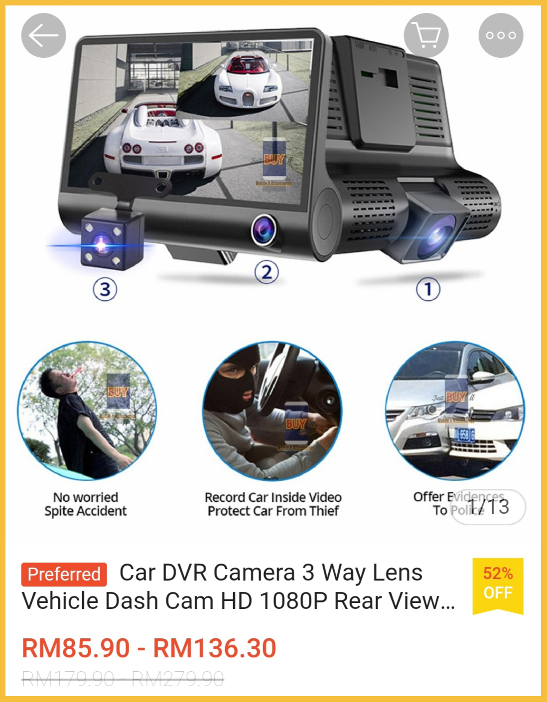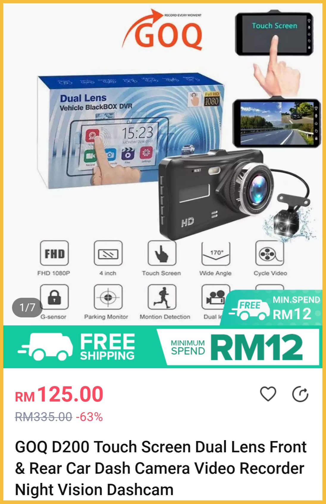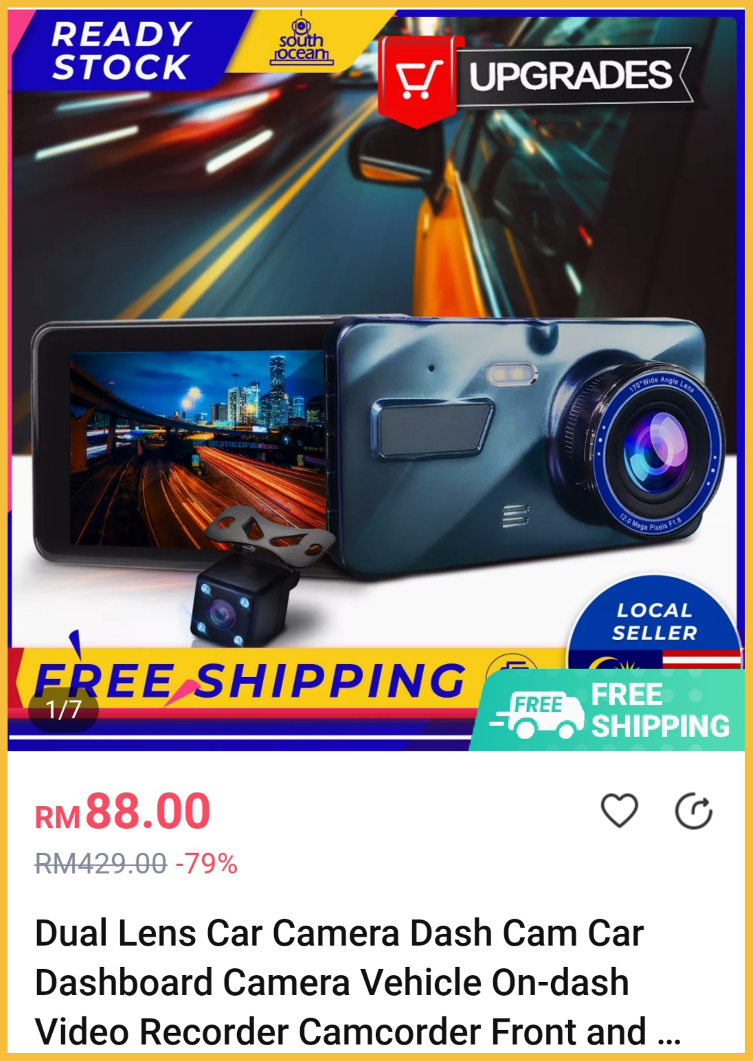 - Shopee 价格:RM111.69(Blue Screen 1080P);RM132.89(Black Screen 1296P)